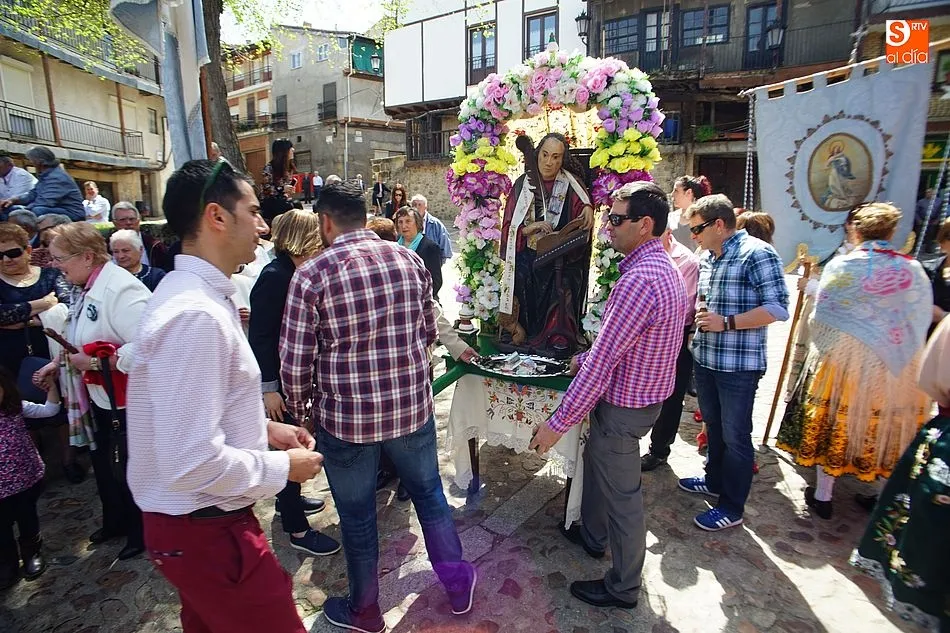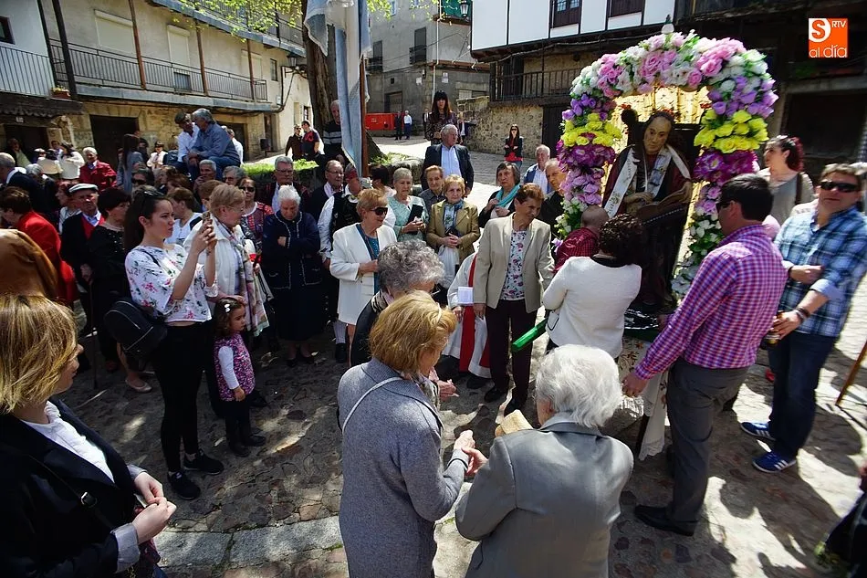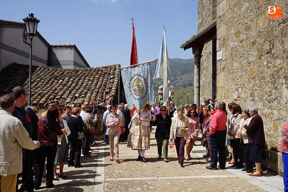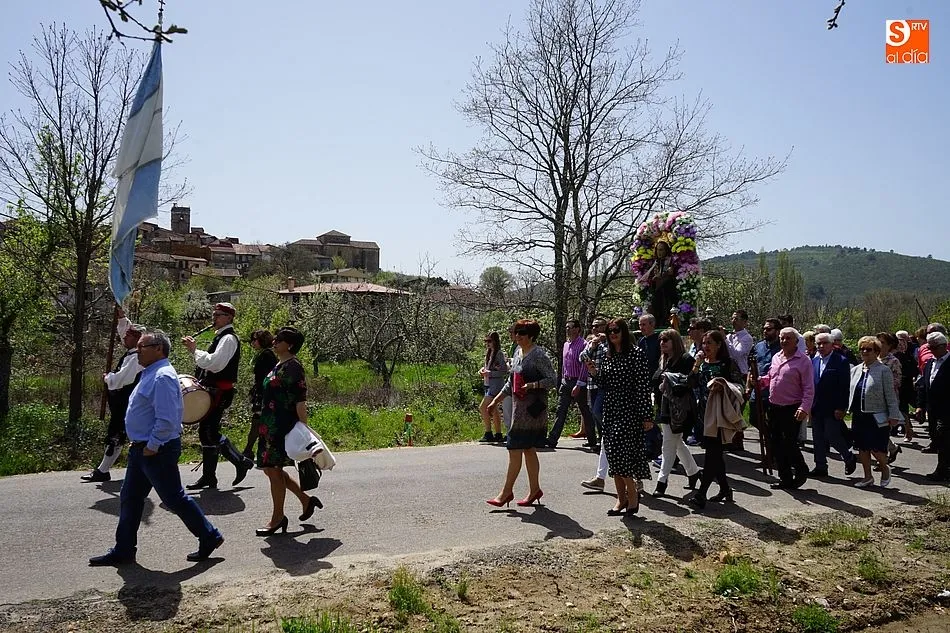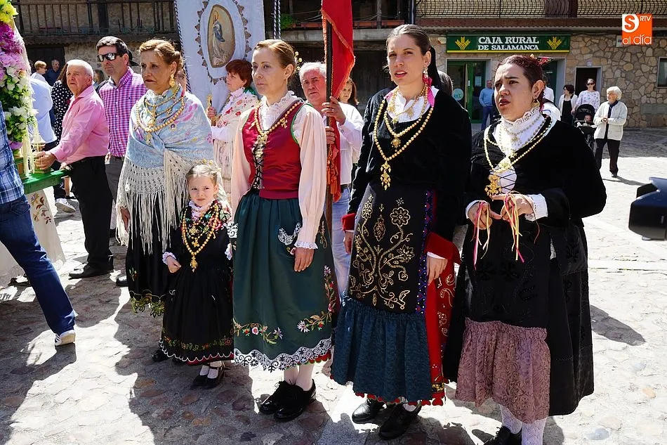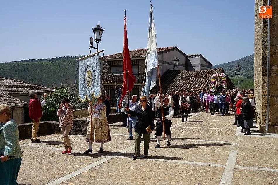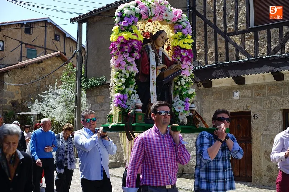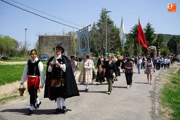 Los colores de la primavera se han unido a los ritmos de la gaita y el tamboril en Cepeda para enmarcar un día grande de los festejos cargado de tradición y sentimiento en la localidad serrana. Tras un fin de semana de actividades y propuestas, llegó el turno del patrón de la localidad, cuya imagen permanecía en la iglesia de la localidad y llegó el momento de devolverla a la ermita. A mediodía comenzó la solemne misa con una iglesia prácticamente llena y con numerosos vecinos ataviados con los trajes típicos.