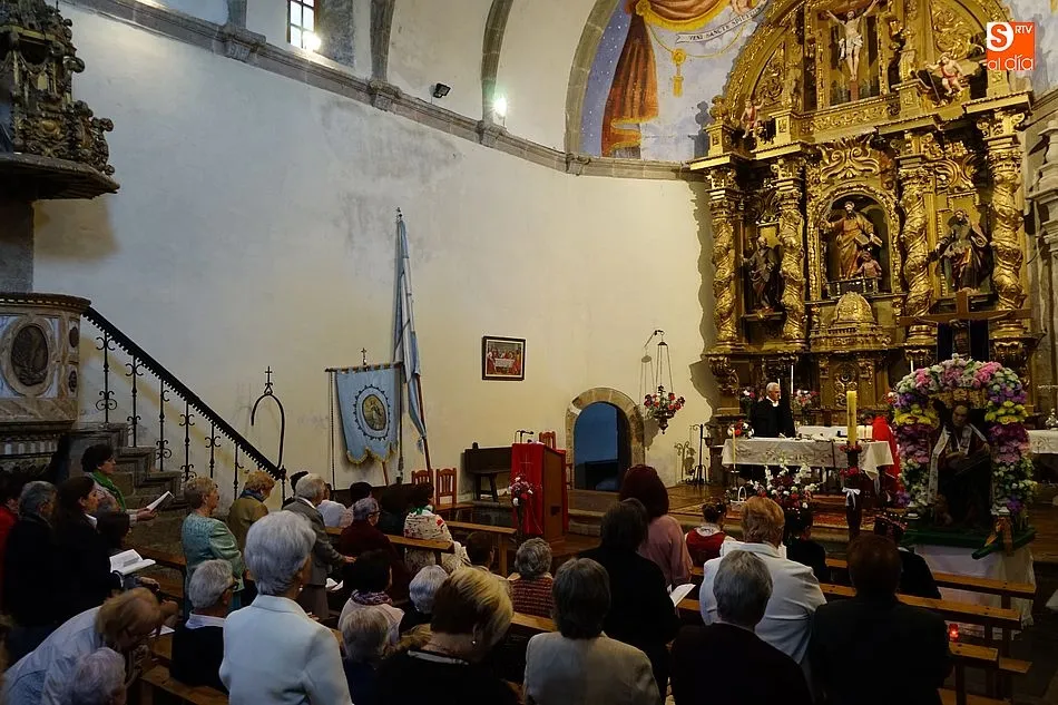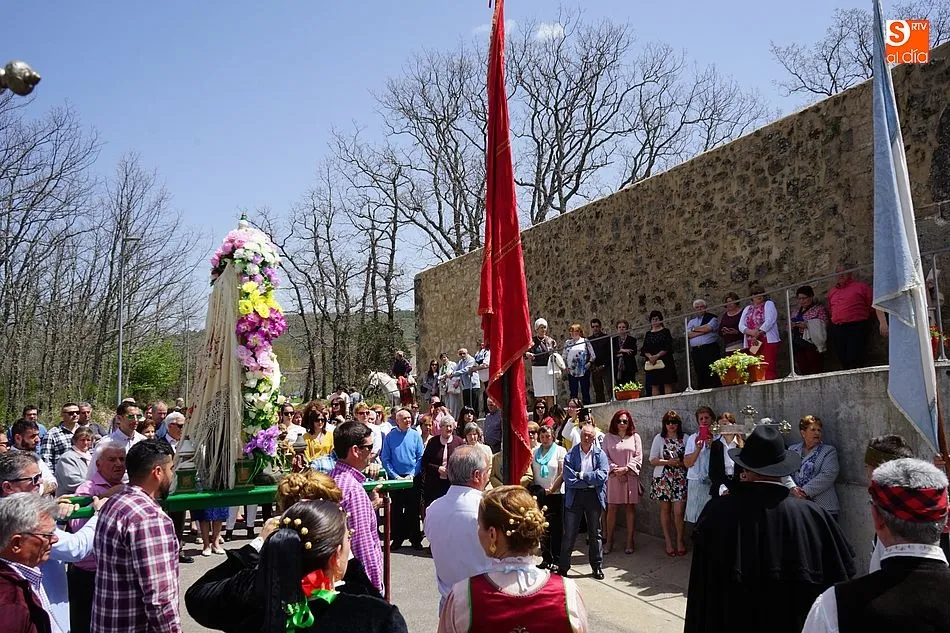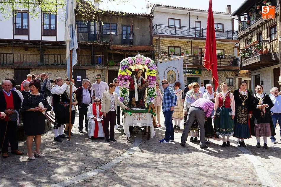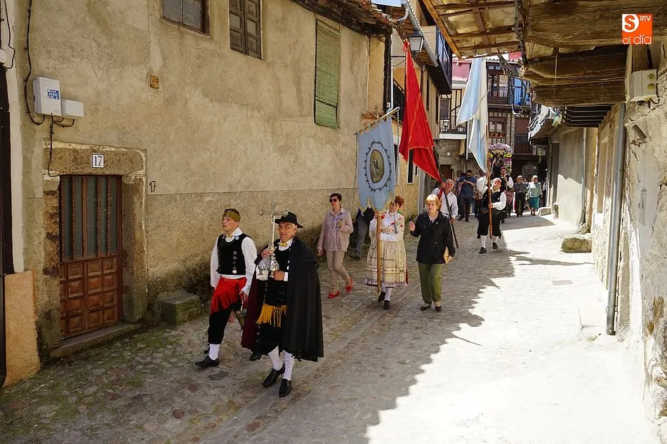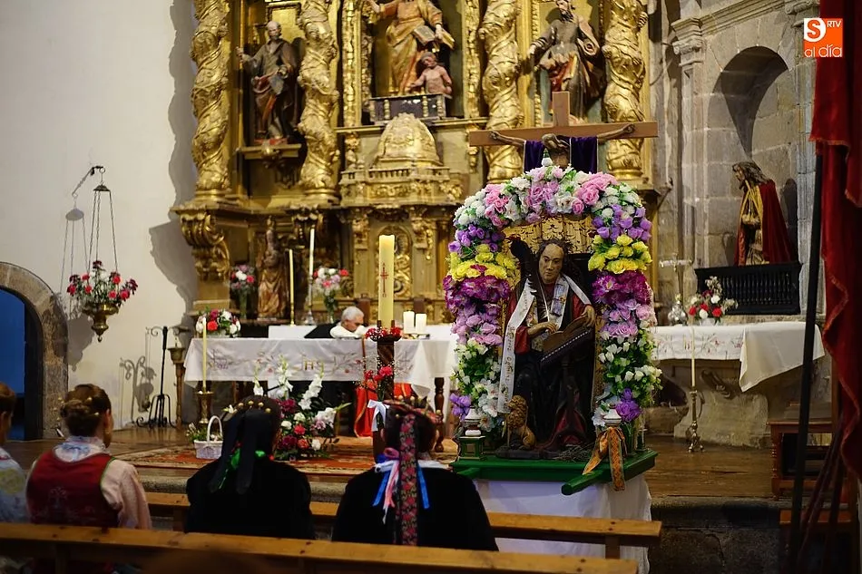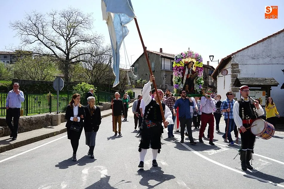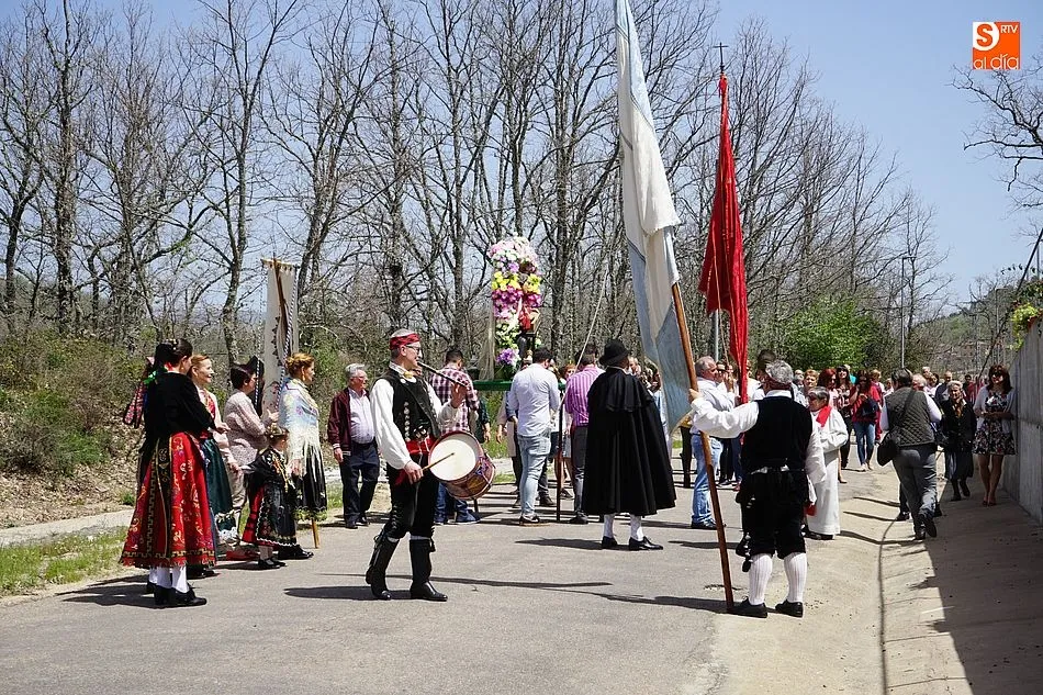 Los colores de la primavera se han unido a los ritmos de la gaita y el tamboril en Cepeda para enmarcar un día grande de los festejos cargado de tradición y sentimiento en la localidad serrana. Tras un fin de semana de actividades y propuestas, llegó el turno del patrón de la localidad, cuya imagen permanecía en la iglesia de la localidad y llegó el momento de devolverla a la ermita. A mediodía comenzó la solemne misa con una iglesia prácticamente llena y con numerosos vecinos ataviados con los trajes típicos.