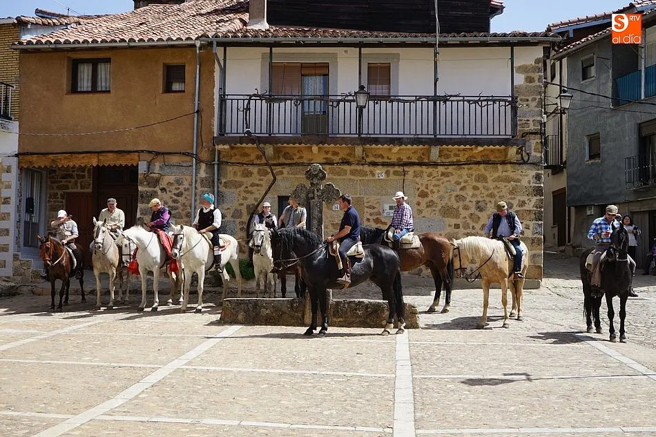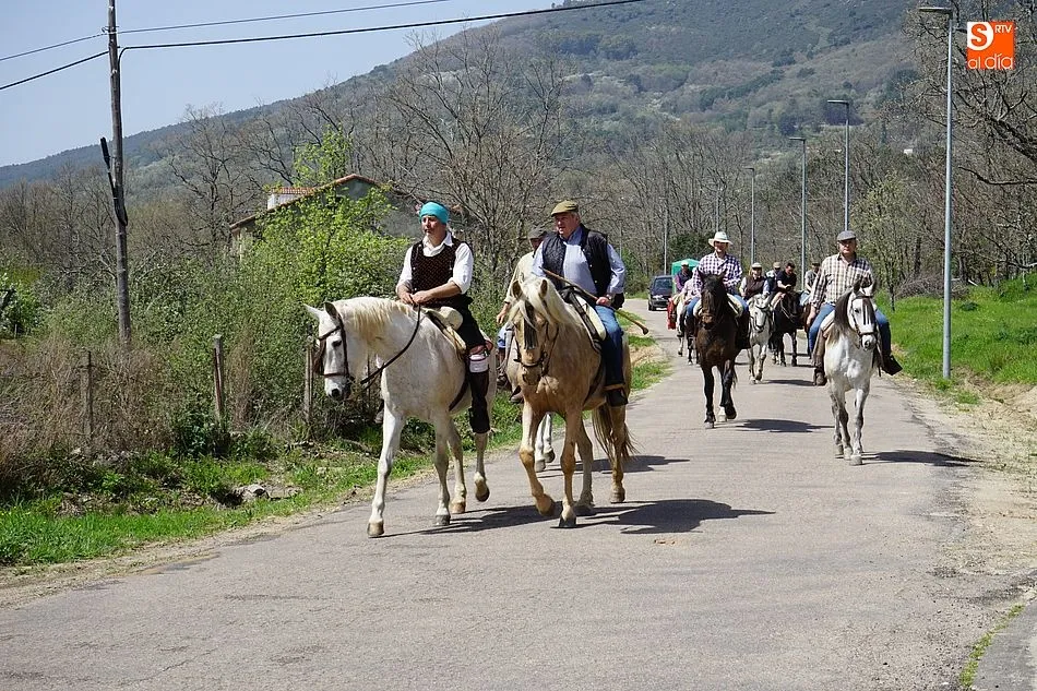 Durante la liturgia, fueron llegando los caballistas que partieron a primera hora de La Alberca. En esta ocasión, se unieron un total de 11 jinetes con sus monturas, que se reunieron junto a la cruz en la plaza de la iglesia y escoltaron la procesión hasta la plaza en primer lugar. Allí tuvo lugar el Ofertorio, por el que pasaron más de dos centenares de personas. No faltaron los bailes al son de la gaita y el tamboril, y los vivas a San Marcos. A continuación, se marchó hasta la antigua ermita de San Marcos. Este templo recibió los trabajos de una escuela taller en 2015, que recuperó las paredes, y ahora se espera poder techar en un futuro para devolver al templo un uso real.