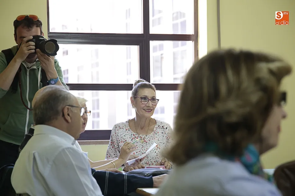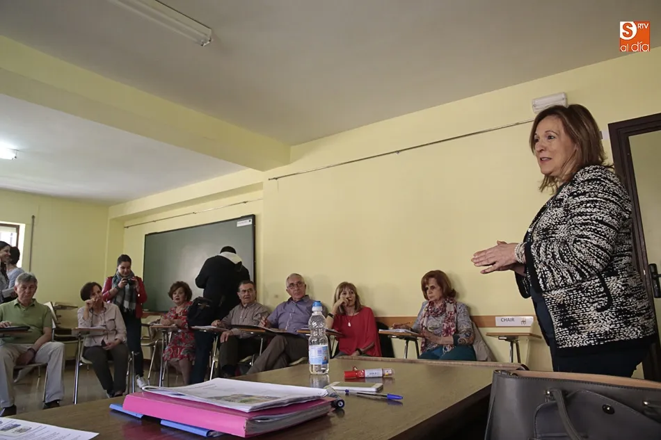 Mejorar el desarrollo intelectual, la plasticidad cerebral y las relaciones personales, fortalecer la memoria, proporcionar mayor rapidez cognitiva y facilitar la comunicación en el ámbito familiar son los objetivos de los talleres de idiomas que realiza el Ayuntamiento de Salamanca para personas mayores. La concejala de Mayores, Isabel Macías, ha visitado esta mañana en el Centro Municipal Juan de la Fuente a más de una treintena de personas que se benefician de estas actividades municipales.