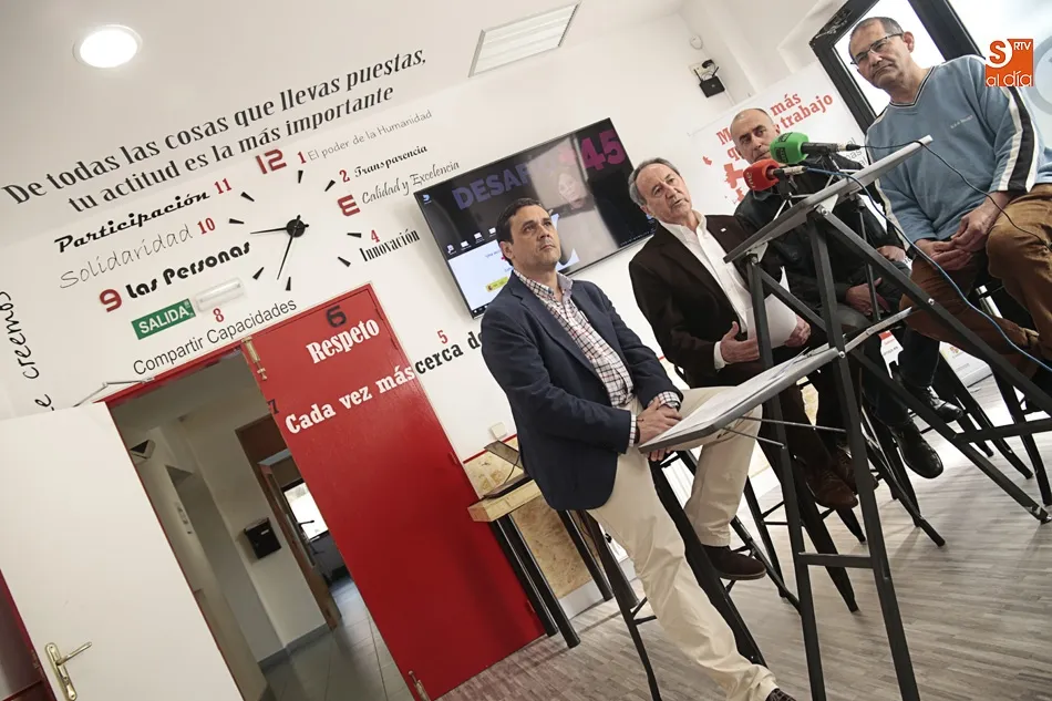 En la presentación del proyecto intervenían Jesús Juanes, presidente provincial de Cruz Roja en Salamanca, José Vaquero, director provincial del Plan de Empleo de Cruz Roja, junto a Carlos Duque y Francisco Matilla, usuarios del programa ?Apoyo +45?.