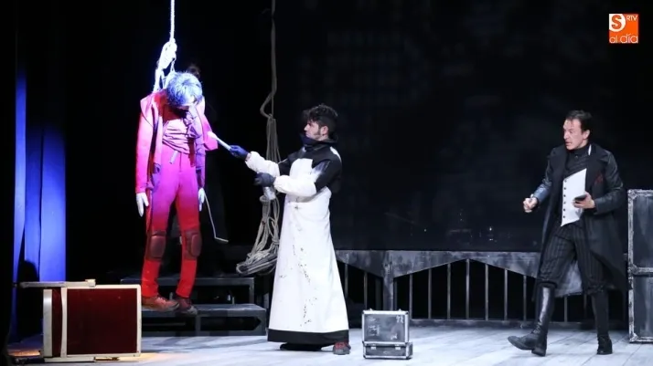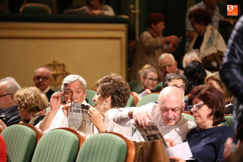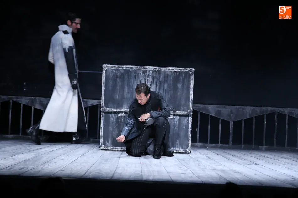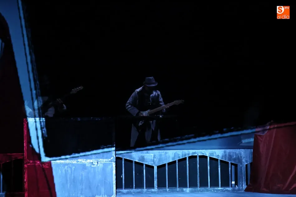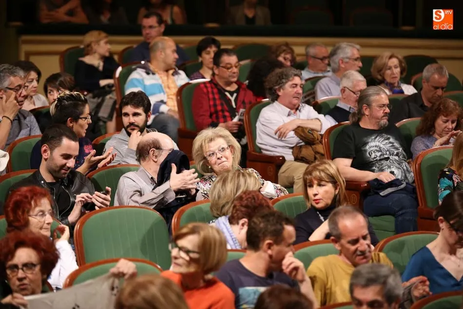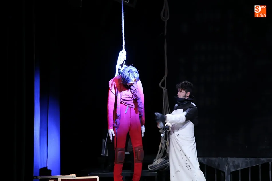 La compañía Ron Lalá llegaba este viernes a Salamanca con la obra ?Crimen y telón? que volverán a representar este sábado, a las 21 horas con el reparto integrado por Juan Cañas, Íñigo Echevarría/Jacinto Bobo, Fran García, Miguel Magdalena y Daniel Rovalher y bajo la dirección de Yayo Cáceres. Una obra en la que rinden homenaje al teatro universal a través de un thriller de género negro y ambientado en un cercano futuro en que las artes están prohibidas y nuestro planeta, convertido en Ciudad Tierra, es liderado por una inteligencia artificial con un ejército de drones. Una investigación contrarreloj en que el asesino podría ser cualquiera. Incluso ustedes, señores espectadores.