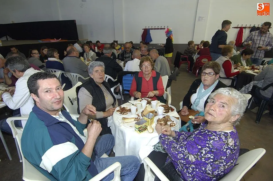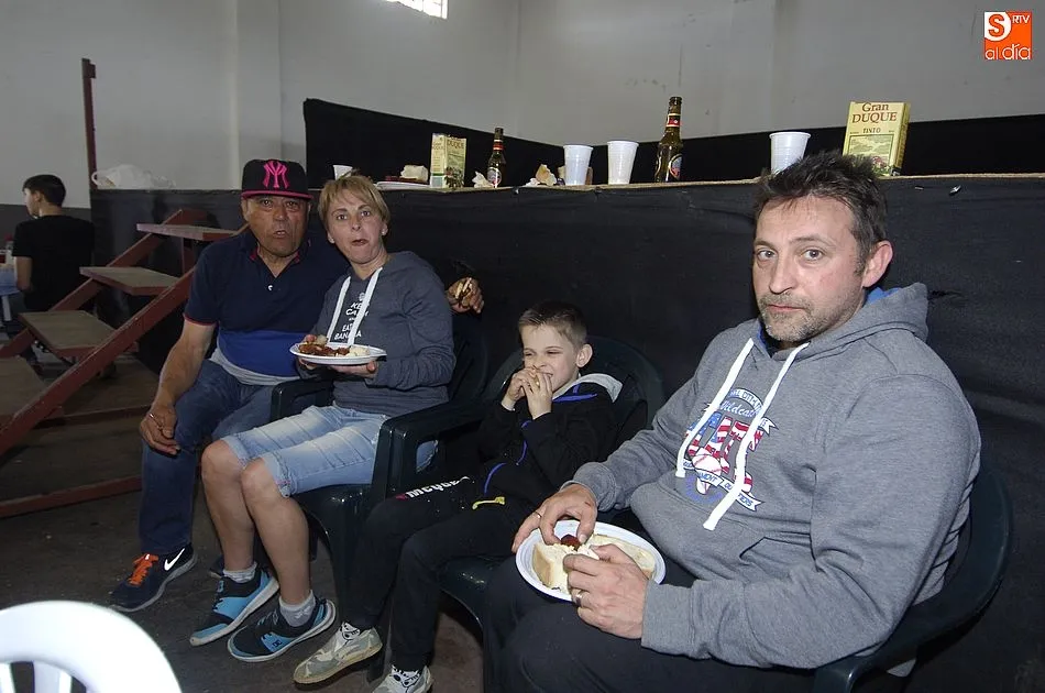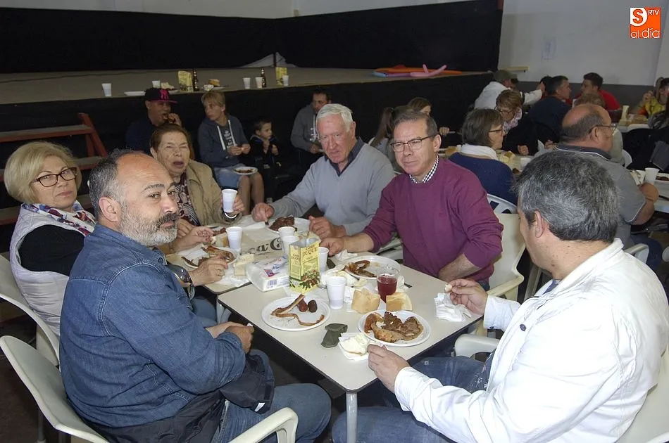 Un año más, todos los presentes degustaron carne asada, que fue preparada en el exterior del local de La Panera. A la hora de comerla, hubo personas que optaron por hacerlo en el interior del local, mientras que otros lo hicieron en el exterior, aunque la temperatura no era tan agradable como en la jornada del jueves.