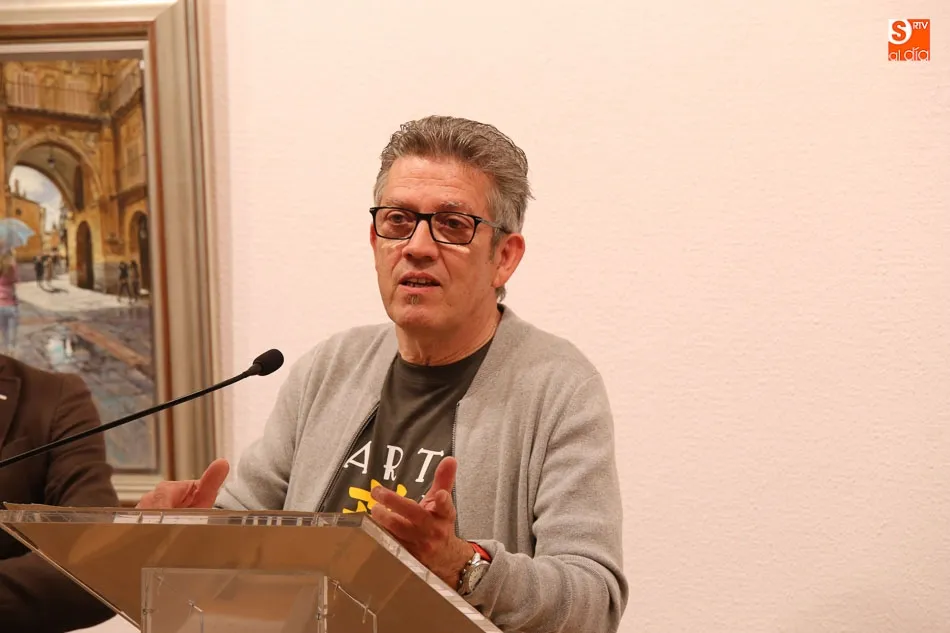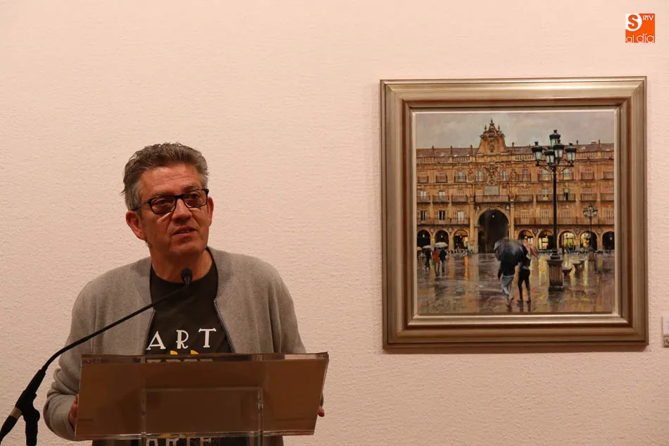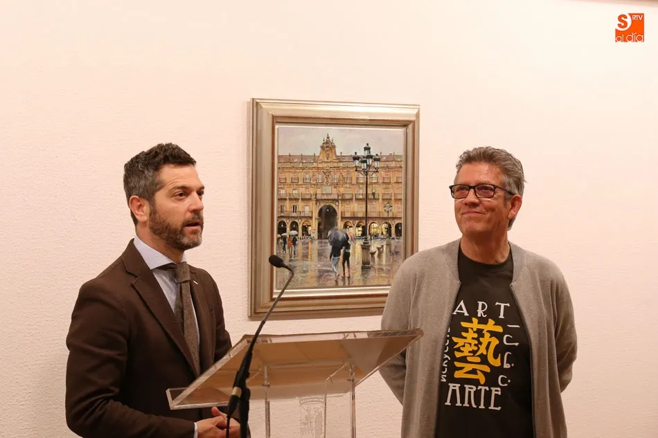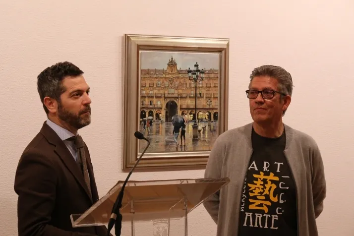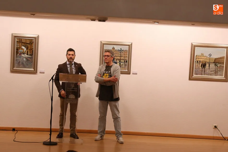 El concejal de Cultura, Julio López Revuelta, y el artista Antonio Varas, han presentado este viernes la exposición ?Paisanaje?, que se puede visitar en la Sala de Garcigrande, ubicada en la plaza de los Bandos.