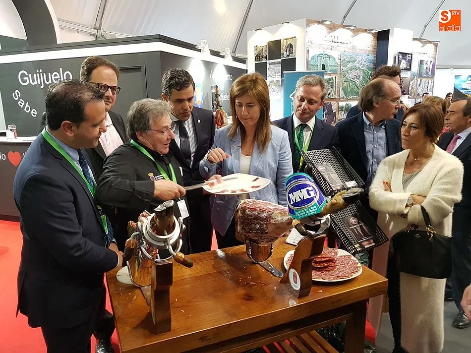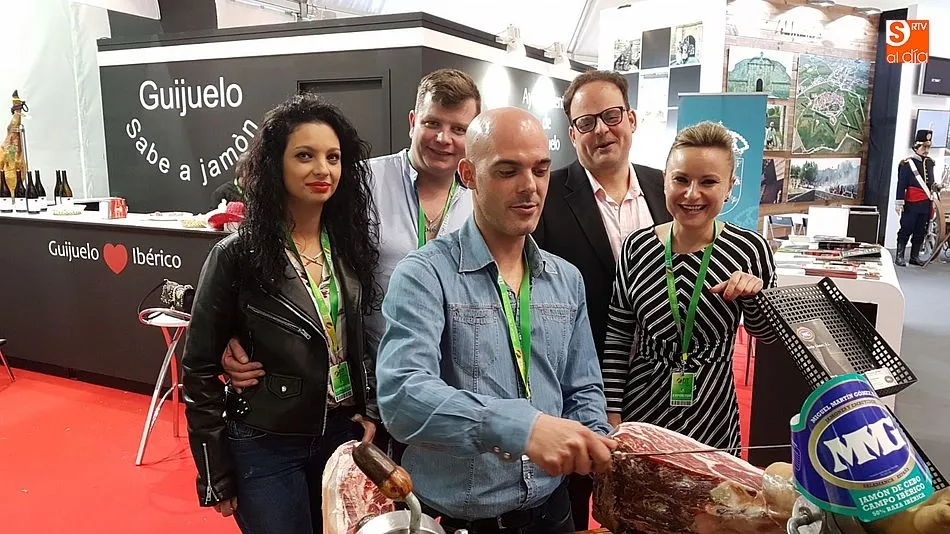 Al igual que en el resto de ferias de turismo a las que asiste el Ayuntamiento de Guijuelo, la Feria Ibérica de Turismo de Guarda en Portugal sucumbe ante el inigualable sabor del jamón ibérico de la villa. Hoy ha dado comienzo la feria con participación del Consistorio chacinero y han comenzado las degustaciones de jamón y productos ibéricos en un expositor con una gran ubicación.