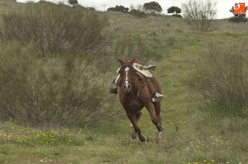 La caída de un jinete, única incidencia del rápido y compacto encierro sabatino de Gallegos   | Imagen 1Este primer encierro ha dejado una única incidencia: la caída al suelo de un jinete, que por fortuna, no tuvo consecuencias de gravedad. El caballo del que cayó continuó formando parte del encierro aunque, antes de entrar en la calleja que lleva al pueblo, el resto de caballistas tomó control del equino para evitar problemas, ya que se temía que se pudiese dar la vuelta y provocar algún accidente.