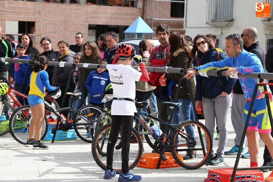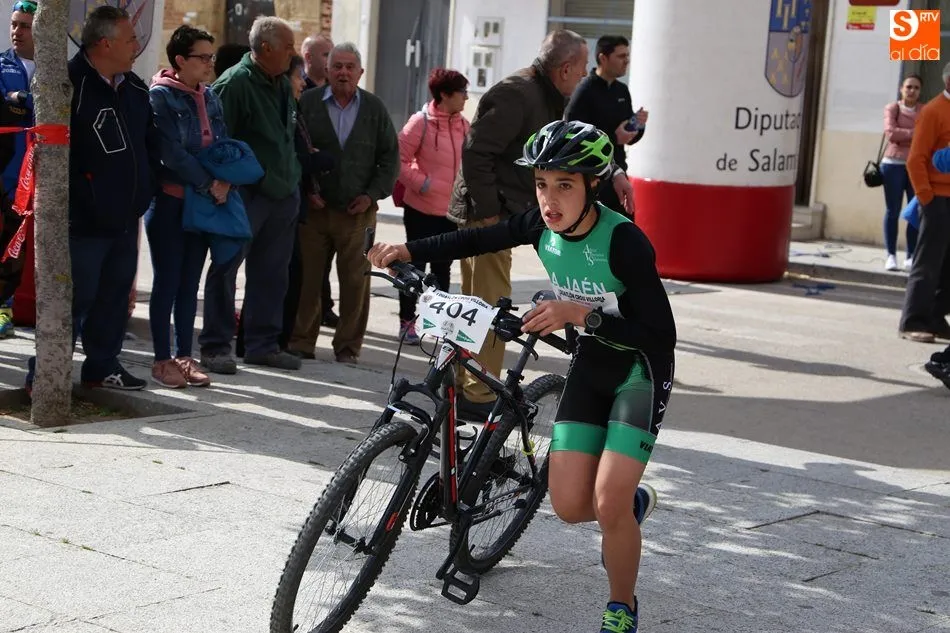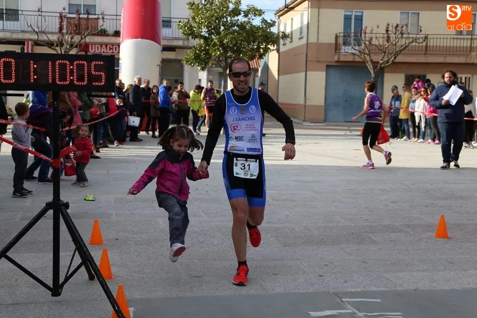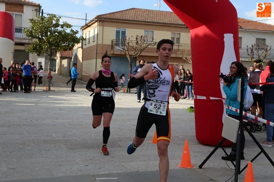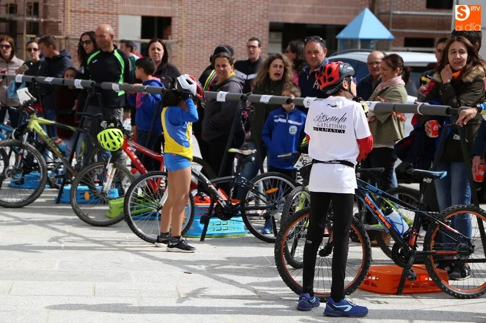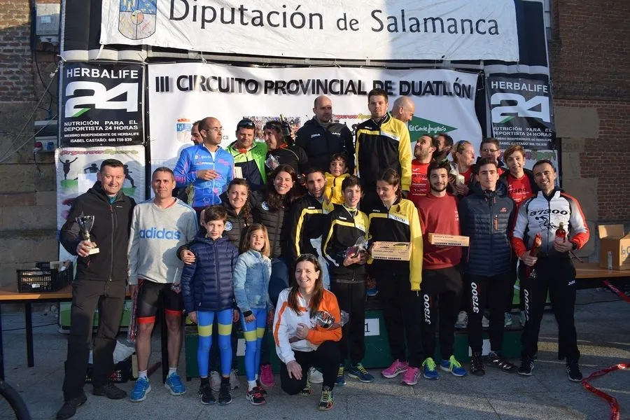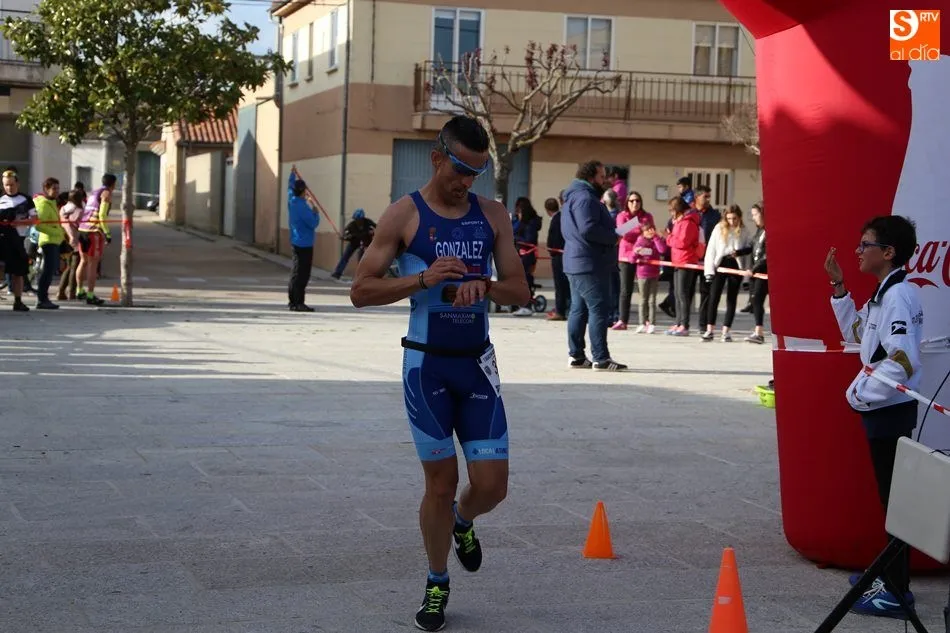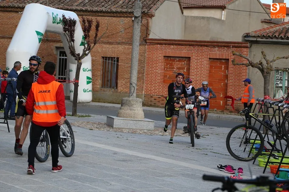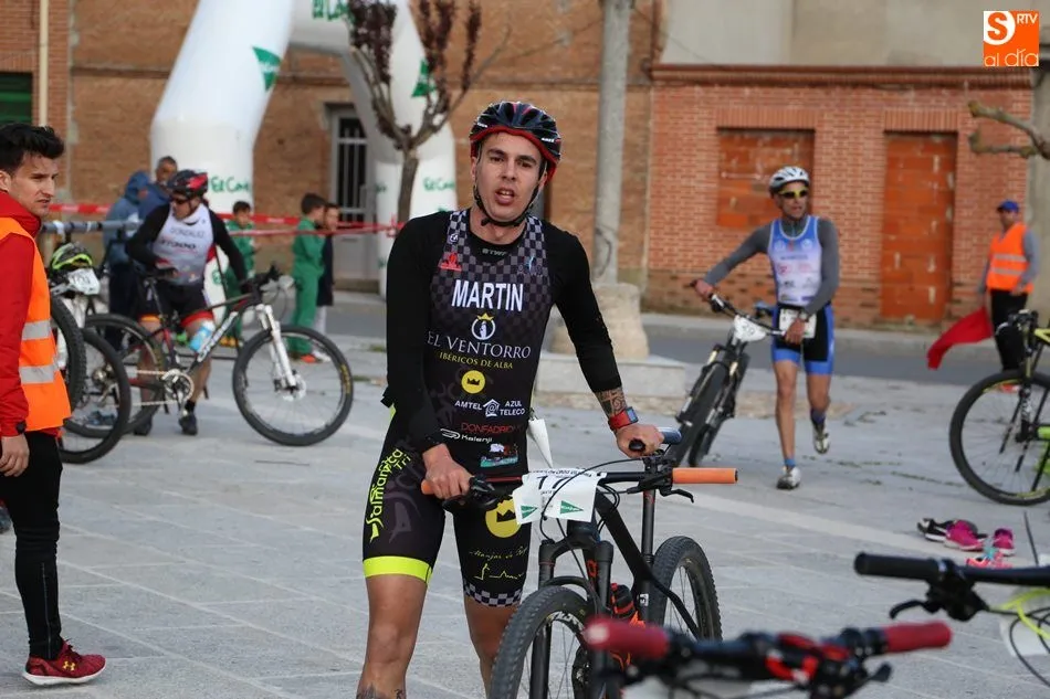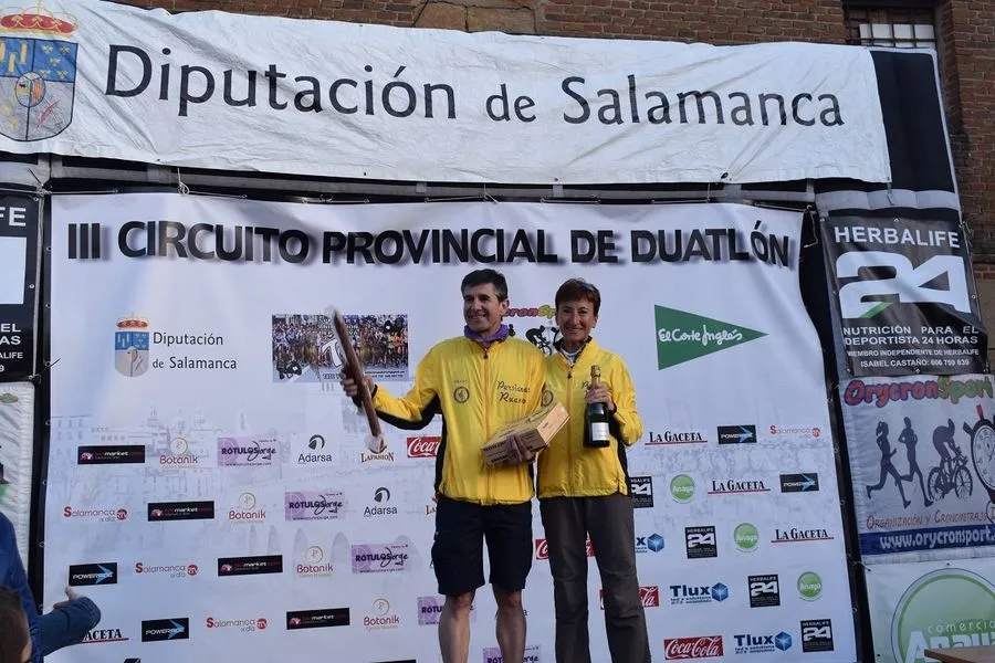 La segunda posición la ocuparon Javier Luengo Martín (Salmántica Triatlón Club) con 57.27 y Nieves Hernández García (Triatlón 37300 Peñaranda) con 1.18.35.