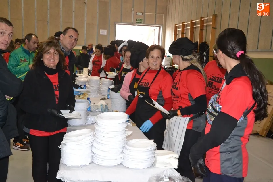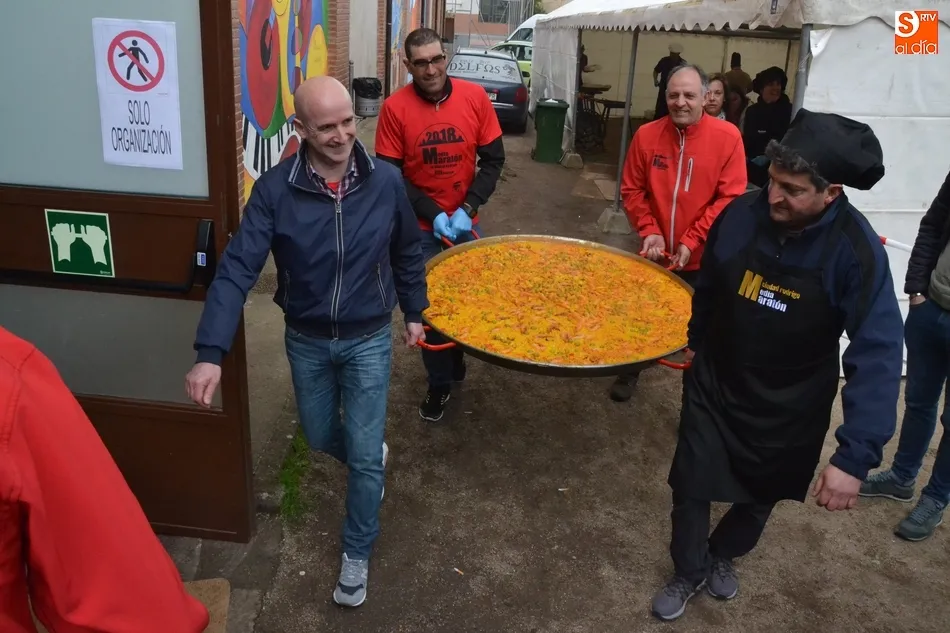 Finalizada la entrega de premios, llegó la hora de llenar el estómago, con el lunch gratuito preparado por la organización para los atletas y sus acompañantes. Como es tradición, todos los asistentes pudieron degustar paella y huevos fritos con farinato que fueron preparados en las carpas montadas en el patio del vecino patio del Colegio San Francisco. Además, también se montó una barra de bar dentro del Pabellón.