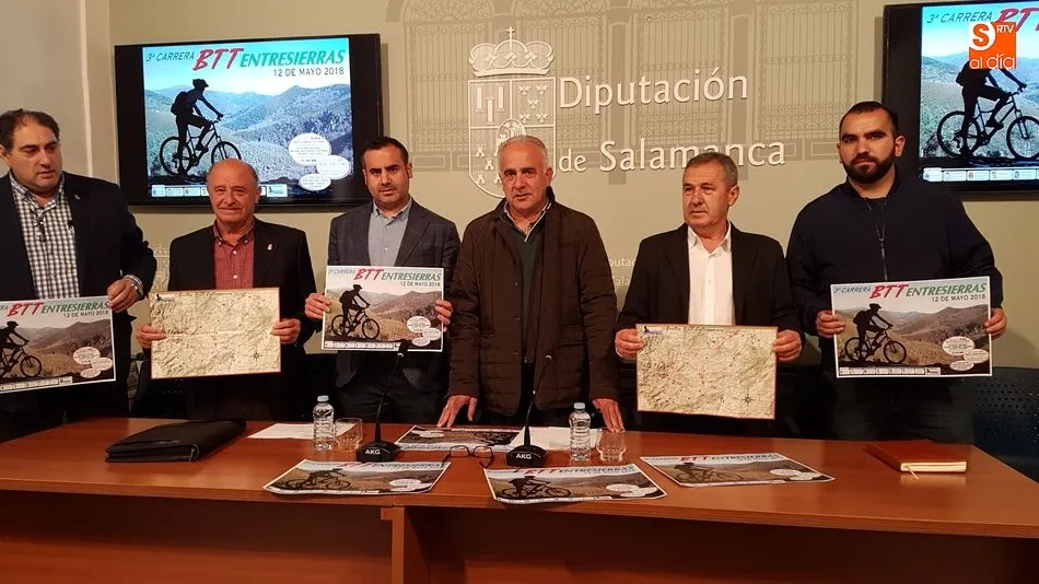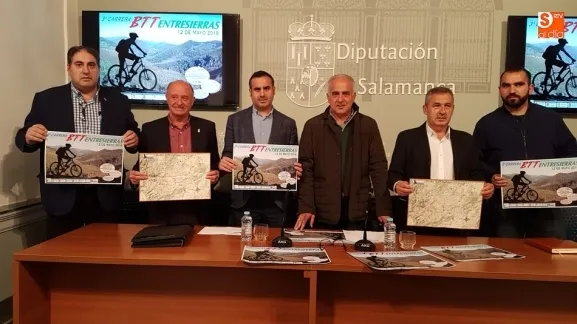 La III Carrera BTT Entresierras, con un recorrido de 57,7 kilómetros, se celebrará el sábado, 12 de mayo. La prueba, que comenzará a las 10.00 horas, comenzarán en San Esteban de la Sierra, para seguir por Santibáñez de la Sierra, Cristóbal, Valdefuentes de Sangusín, Fuenterroble, Los Santos, para finalizar de nuevo en San Esteban. Es San Esteban la localidad a la que esta edición le corresponde la organización, explicó el diputado de Deportes, Jesús María Ortiz, durante la presentación de la cita deportiva en la que estuvo acompañado por los alcaldes de los municipios.