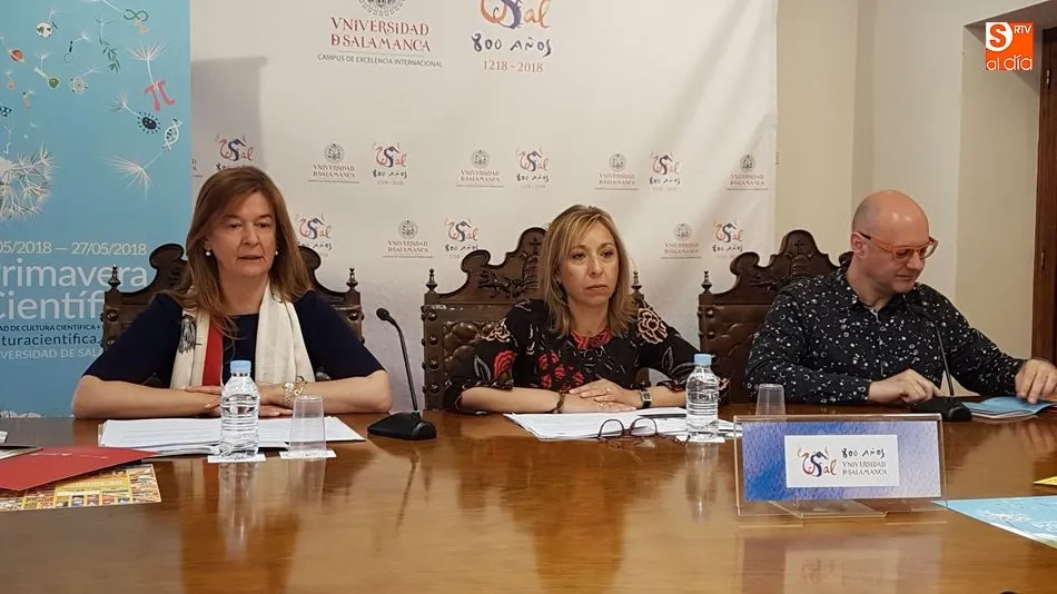 La vicerrectora de Investigación y Transferencia, Susana Pérez; la concejala de Educación, Carmen Sanchez Bellota y el técnico de cultura científica, Agustín Gutiérrez, han presentado en la Universidad el amplio programa que, como novedad, también se celebrará en Zamora, Ávila, Béjar y en Peñaranda.
