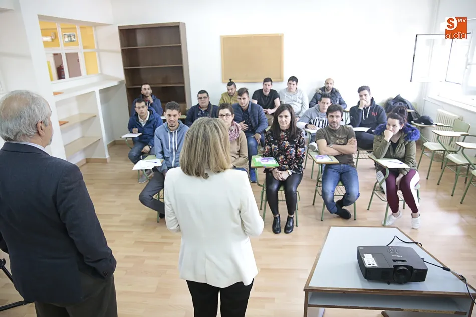 La concejala de Familia e Igualdad de Oportunidades, Cristina Klimowitz, y el gerente provincial del ECyL, Pedro Grijalba, han visitado esta mañana en el Centro de Formación y Orientación Laboral Miguel de Unamuno (CEFOL) a los quince beneficiarios de esta iniciativa que persigue facilitar la inserción al mercado laboral de personas en situación de desempleo, menores de 30 años, inscritas en el Sistema Nacional de Garantía Juvenil.