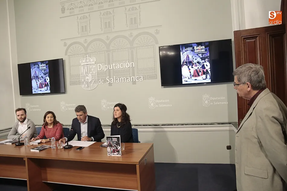 ?Bailes y danzas de la provincia de Salamanca? es el último libro publicado por la Diputación, que se ha presentado este viernes en el palacio de La Salina fruto de las becas ertnográficas Ángel Carril. La obra, con introducción de Miguel Manzano, tiene como autores a los investigadores Julia Andrés Oliveira, Susana Arroyo y José María Mezquita, y ha sido editada por el Instituto de las Identidades (Ides).