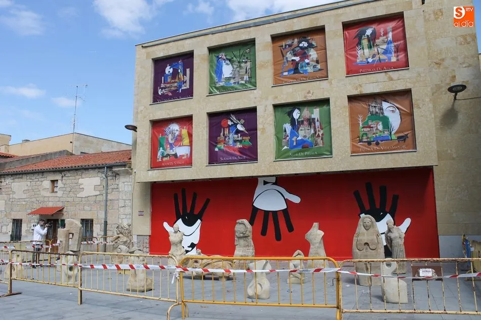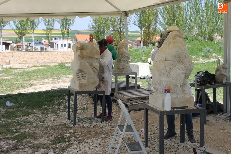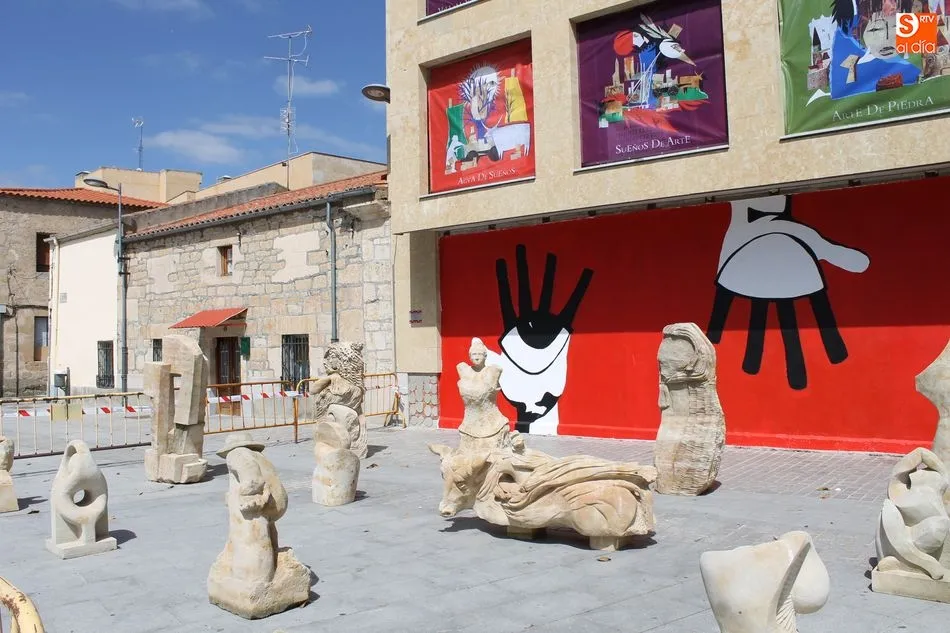 En la Plaza de España, junto a las ilustraciones de Violeta Monreal, se puede visitar hasta el 9 de mayo la muestra denominada ?El Bosque de Piedras?, que reúne 15 esculturas en piedra de Villamayor seleccionadas en diferentes ediciones de la Feria, y un mural realizado por Celia Parriego, alumna de último curso de Bellas Artes.