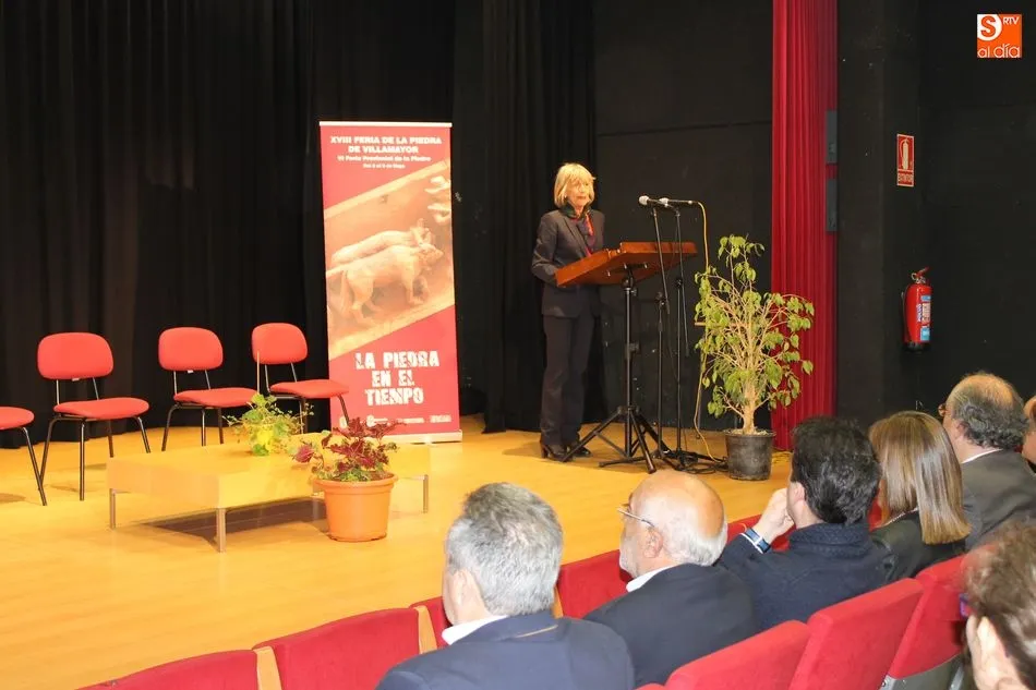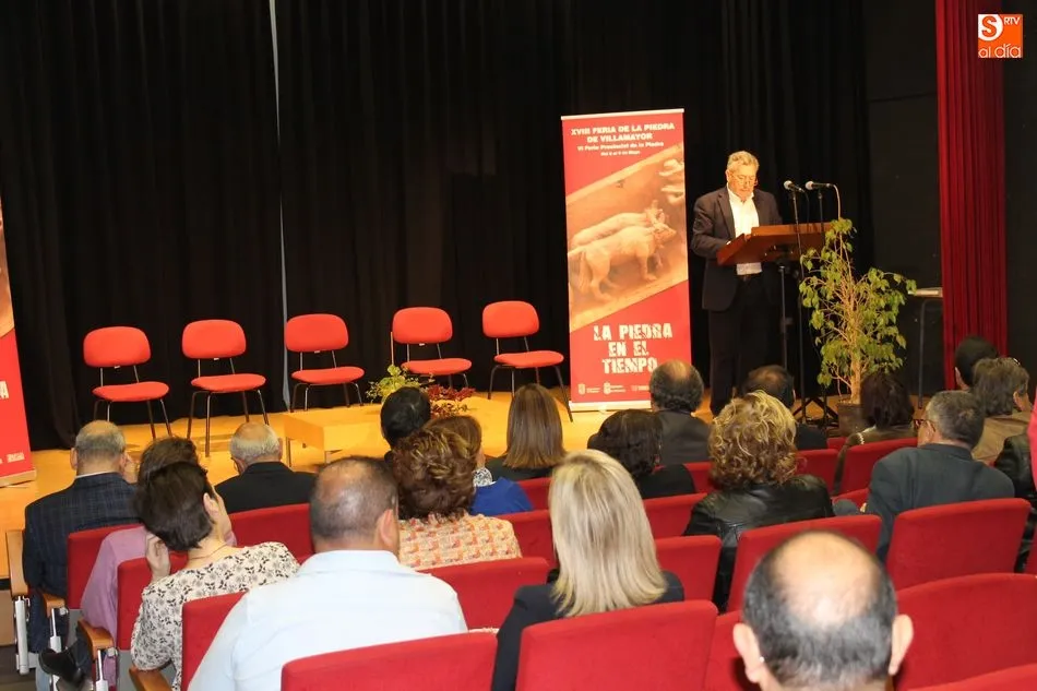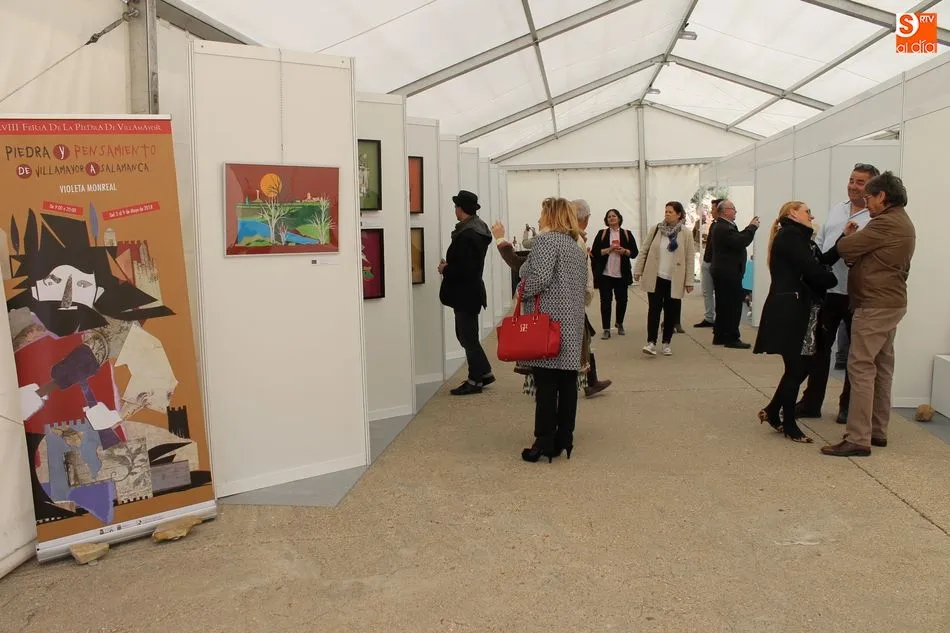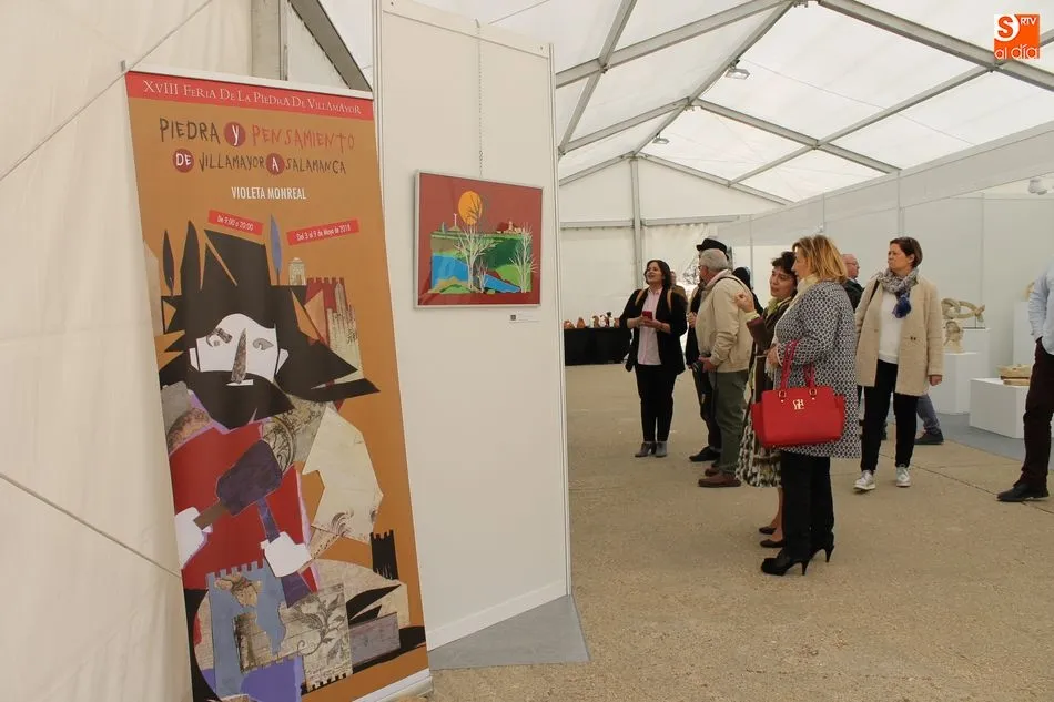 La arenisca de Villamayor luce ya en todo su esplendor en la XVIII Feria de la Piedra que hoy se ha inaugurado oficialmente con la presentación de la exposición ?Piedra y Pensamiento?, de Violeta Monreal, que se puede visitar en la Plaza de España y en el Hábitat Minero, y con el acto institucional celebrado en el salón de actos Antonio Gamoneda en el que, junto a las autoridades locales, han estado presentes el subdelegado del Gobierno en Salamanca, Antonio Andrés Laso, y el vicerrector de Política Académica y Participación Social de la Universidad de Salamanca, Enrique Cabero.