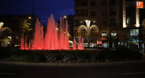 La fuente de la Puerta Zamora se iluminará mañana 5 de mayo de color azul con motivo de la celebración del Día Mundial de la Espondilitis Anquilosante.