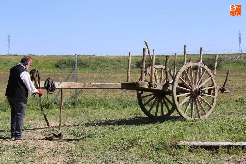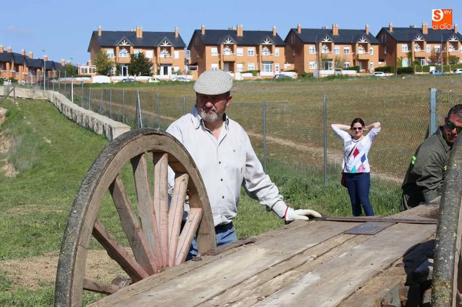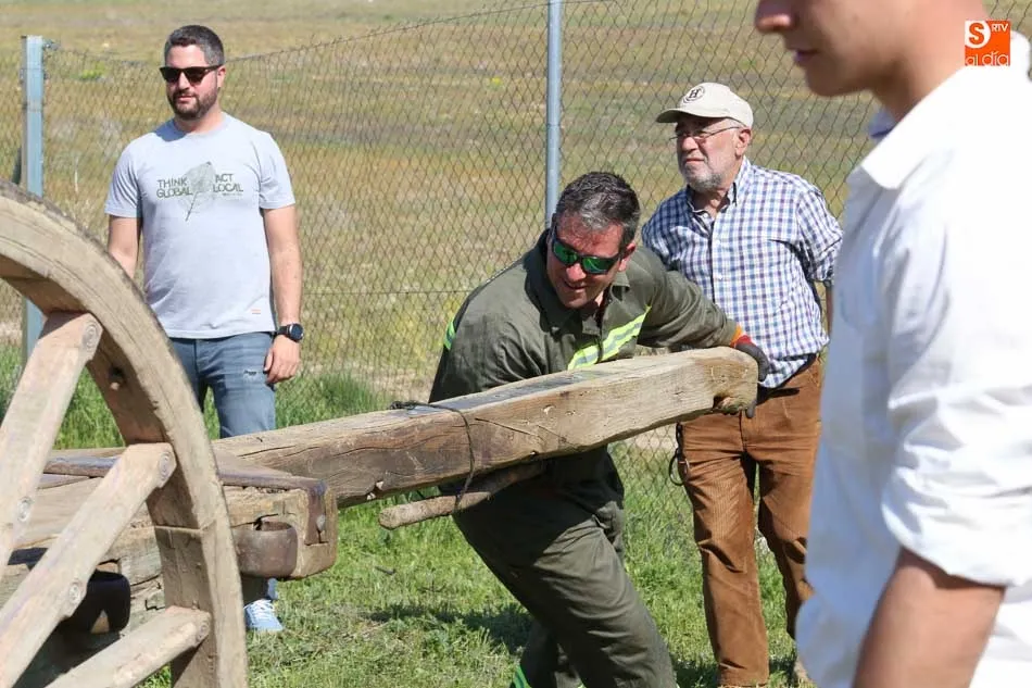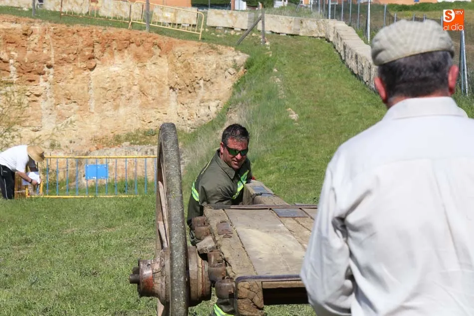 La jornada contó con tres carretas tiradas por seis bueyes que transportaron los bloques de piedras extraídos de la cantera Cabeza Maya