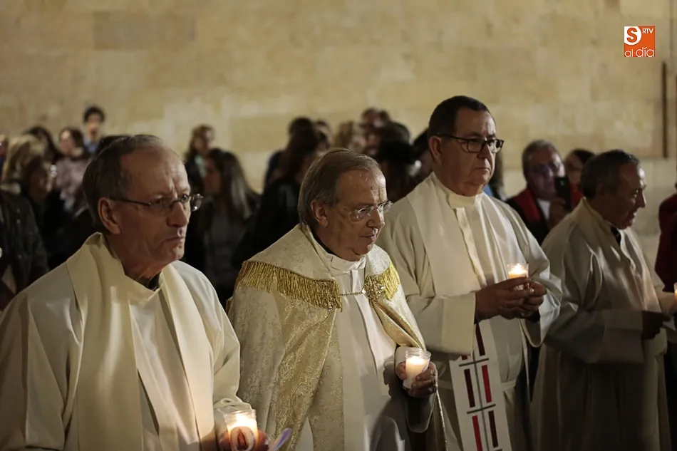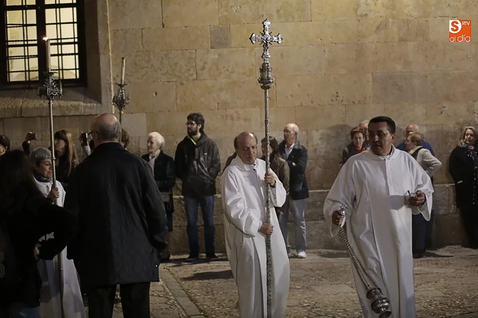En la jornada de este sábado realizada a las 21.30 horas en la Catedral Vieja se oró ante las imágenes de La Piedad y la Virgen de la Palma. Donde además se lució la imagen de la Virgen de la Vega por diferentes calles de la ciudad, recordando la promesa realizada por la ciudad ante ella.
