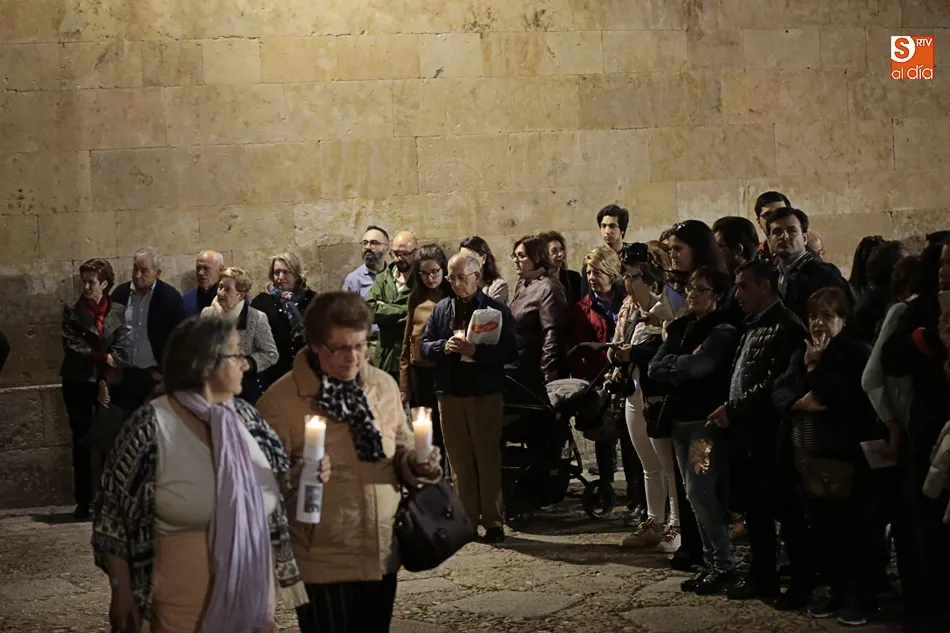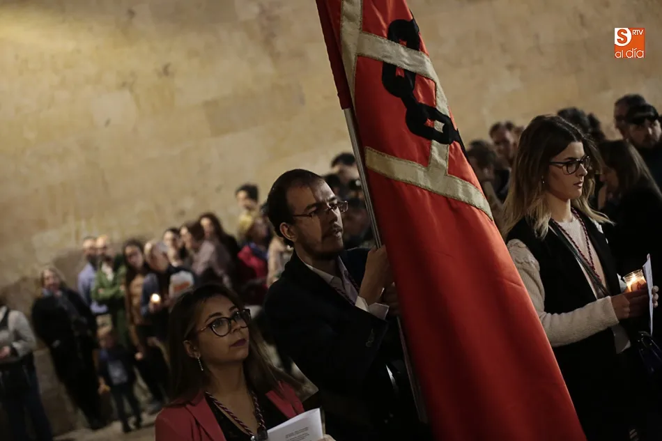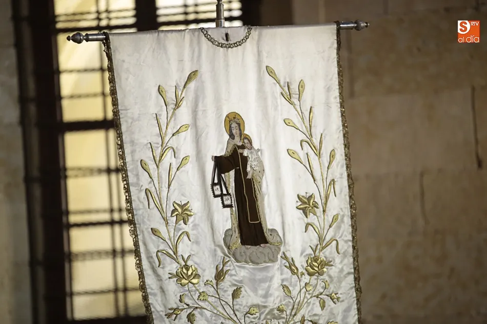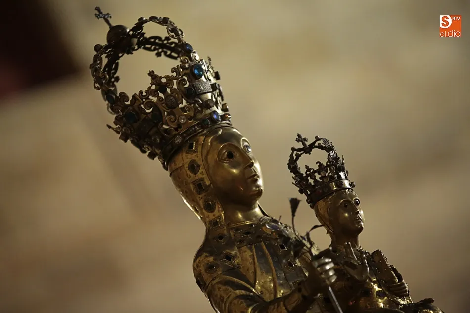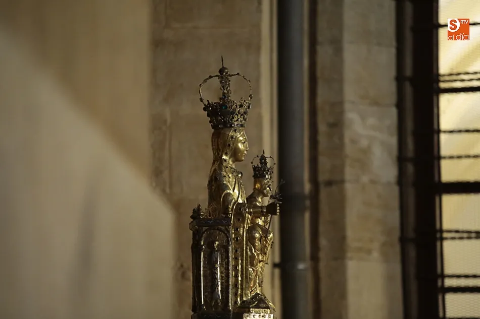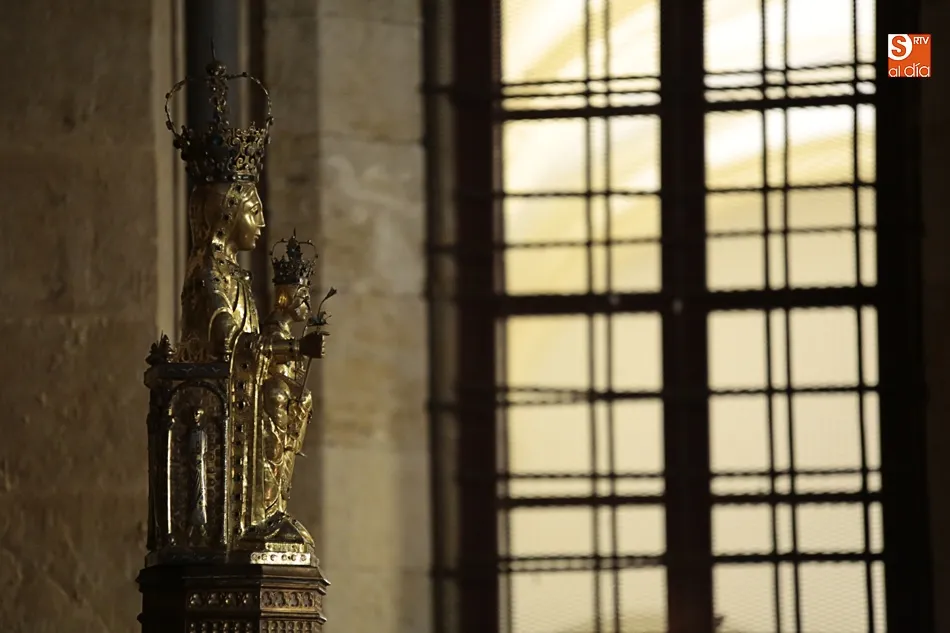 La Catedral Vieja de Salamanca acogió hoy la salida de un Rosario procesional con la imagen de Santa María de la Vega por las calles de Salamanca. La jornada invitó a la participación de parroquias, cofradías, movimientos y comunidades religiosas con sus banderas y estandartes marianos