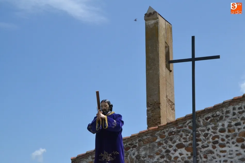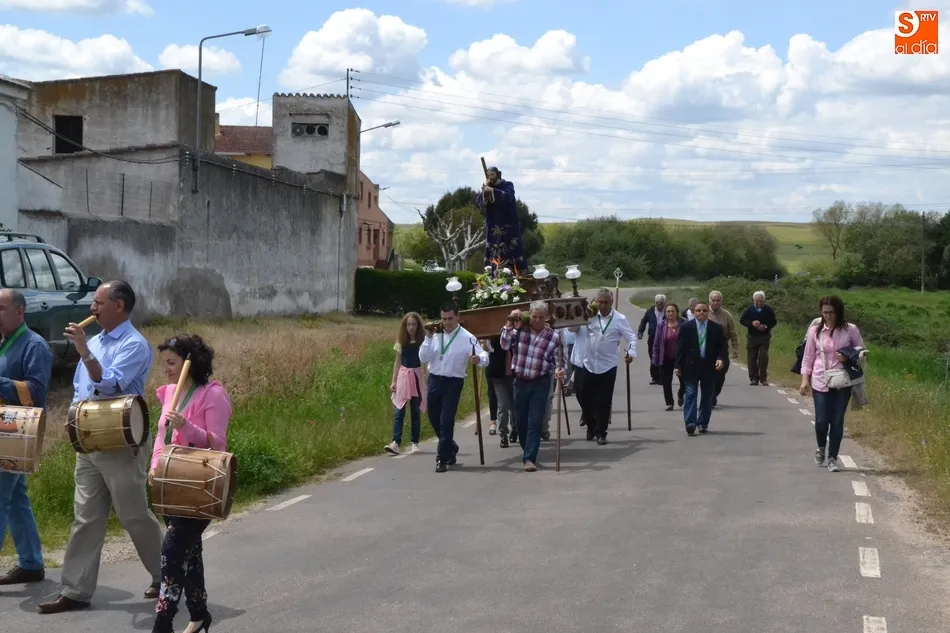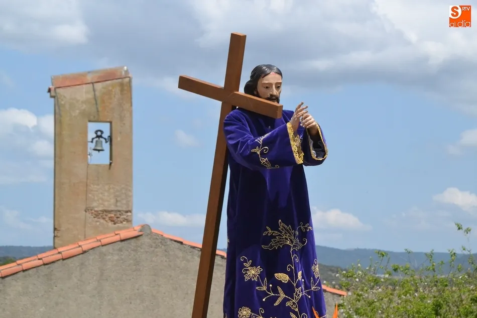 De este modo, mientras que durante la Semana Santa representa a Jesús Camino del Prendimiento, en esta procesión de la mañana del domingo en Conejera adoptó el rol de Nazareno con una Cruz a cuestas, todo ello encima de unas andas bastante pesadas que complicaron esta nueva procesión que se desarrolló a la conclusión de una misa presidida por Domingo Peinado.
