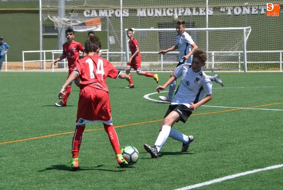 La sesión en los Campos de Toñete continuó -con bastante calor- con el duelo de infantiles, que comenzó muy bien para el Ciudad Rodrigo, ya que consiguió adelantarse en el marcador cuando apenas se llevaban dos minutos de juego, de la mano de Guille. La alegría mirobrigense duró pocos minutos, ya que el Salmantino empató en el 8? y se puso por delante en el 13?. Eso sí, en torno a este segundo tanto visitante, hay que apuntar que se produjo justo en la acción posterior a que el árbitro no concediese un claro córner a favor del Ciudad Rodrigo en el otro extremo del campo (dio saque de puerta cuando el último jugador en tocar el balón fue uno del Salmantino).