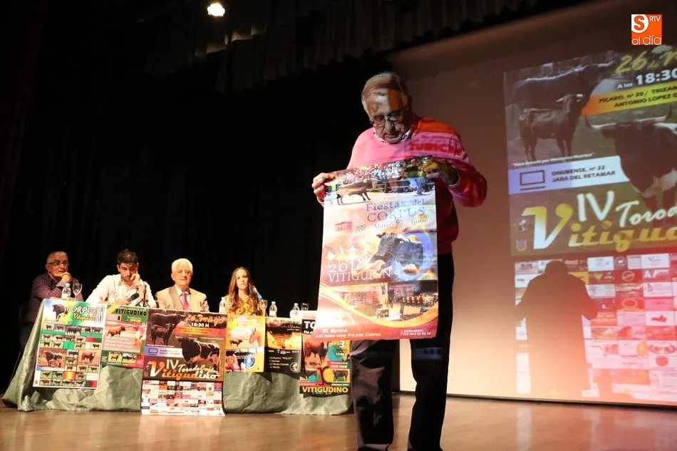 A continuación, Carlos Huertos, presidente de la Asociación Taurina ?Villa de Vitigudino?, desgranaba cada uno de los carteles que anuncian los distintos festejos taurinos que se desarrollarán a partir del 26 de mayo, con la suelta del cuarto Toro de Cajón por las calles vitigudinenses, y su conclusión el 3 de junio, con la suelta del Toro Fin de Corpus y con el que se pretende extender la fiesta hasta el Domingo de Corpus.