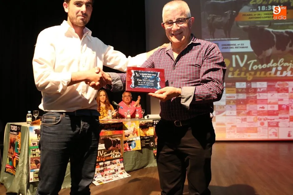 Durante el acto, moderado por la periodista de Vitigudino, Victoria Rodríguez, Carlos Huertos procedía a la entrega de una placa a Jesi Ramiro como representante de la peña El Ruedo por sus 40 años celebrando el Corpus, momento que estaría precedido de un vídeo recordando algunos de sus momentos más entrañables.