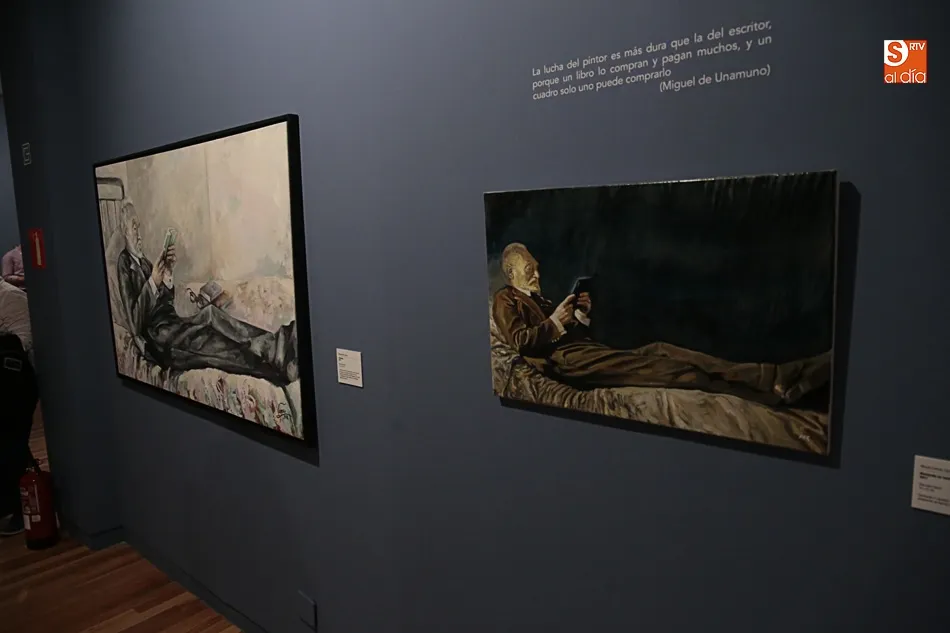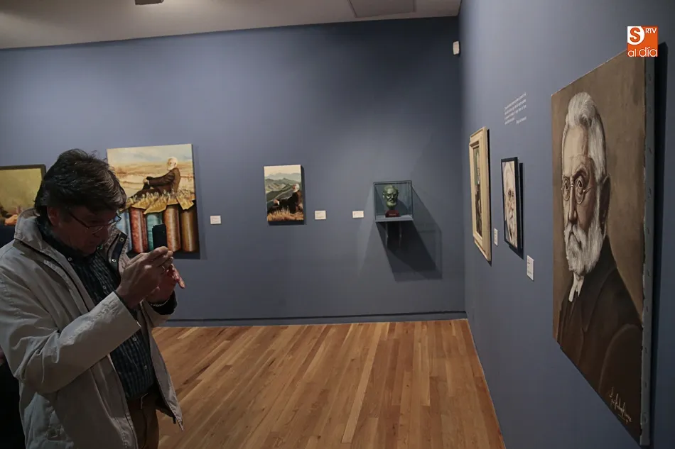 ‘Iconografía Unamuniana’ rinde un homenaje “al mejor rector” de la Universidad con una... | Imagen 1El que fuera 19 años rector de la USAL, dos vicerrector, tres decano y casi 30 años profesor es el gran protagonista, hasta el 5 de agosto, de una muestra de 127 obras, 86 de ellas inéditas, de un total de 117 artistas. La exposición realiza un amplio recorrido por la vida del pensador vasco, incluyendo retratos clásicos, realizados tanto por artistas en vida del escritor, como otros procedentes de colecciones privadas y de descendientes del escritor, cuadros inéditos, instalaciones y esculturas realizadas para esta exposición por artistas procedentes de Salamanca, País Vasco y Madrid en diferentes soportes y formatos. A destacar la presencia de retratos originales de Unamuno realizados por artistas actuales -51 salmantinos, 24 vascos y 11 madrileños-, como el retrato escultórico en bronce del recientemente fallecido Venancio Blanco.