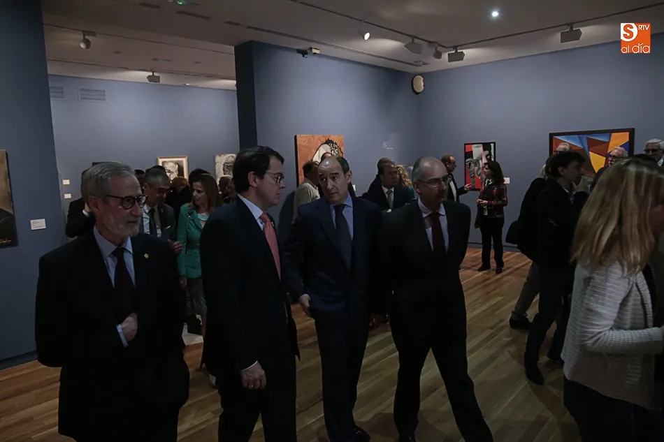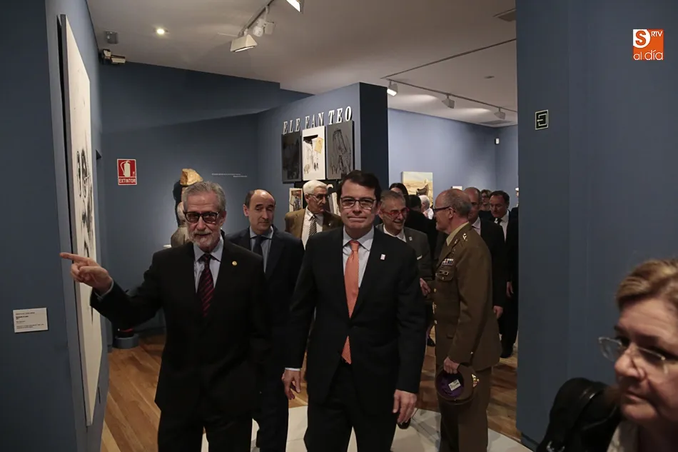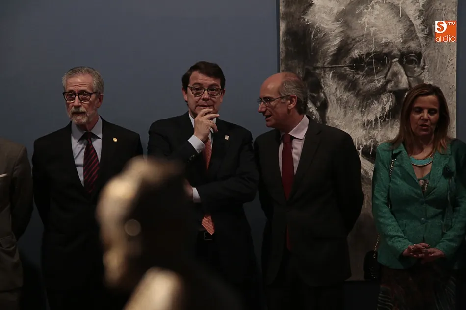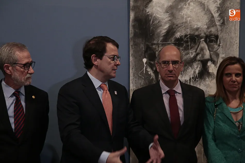 El alcalde de la ciudad, Alfonso Fernández Mañueco; el rector de la Universidad, Ricardo Rivero; el presidente de la Diputación, Javier Iglesias, y el presidente de la Asociación Amigos de Unamuno, Francisco Blanco, y comisario de la muestra han participado en una inauguración que ha contado con una amplia presencia social e institucional.