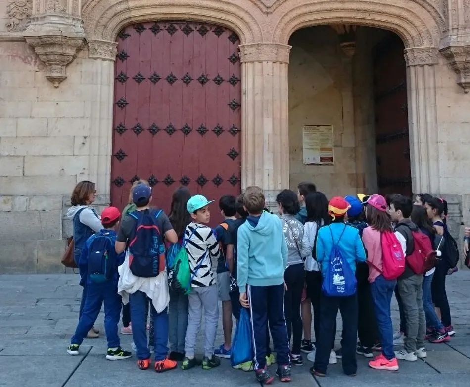 Medio centenar de alumnos de 5º A y 5º B de Primaria del colegio San Blas de Santa Marta de Tormes han disfrutado de una entretenida y didáctica jornada cultural en Salamanca con la visita a edificios representativos organizada por el centro educativo.