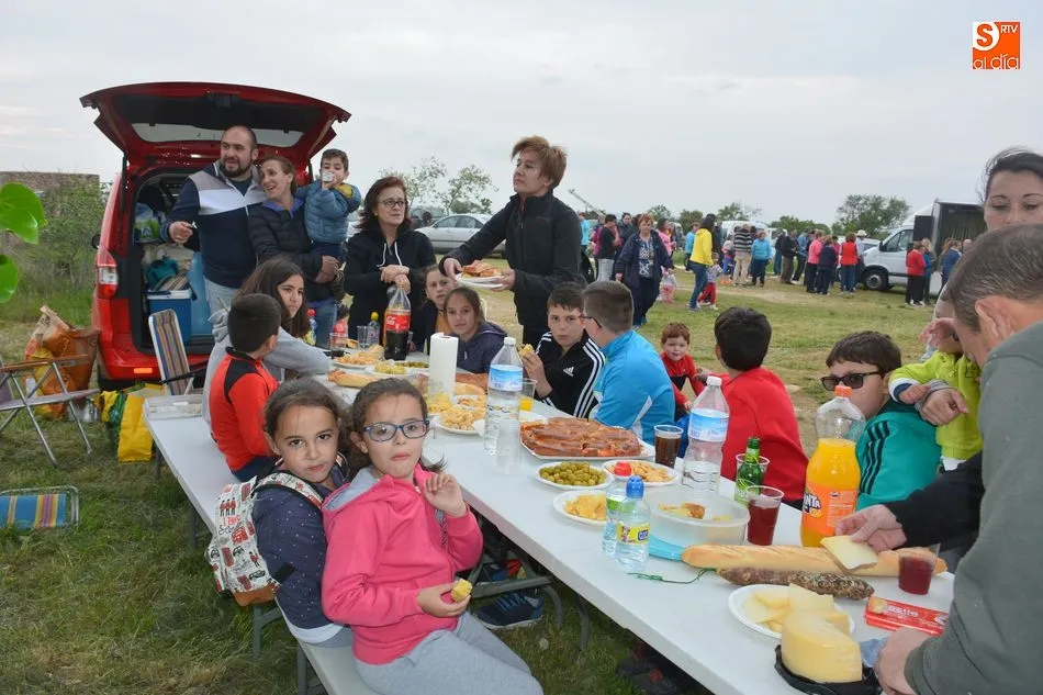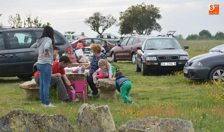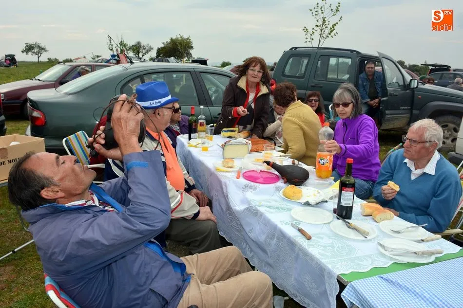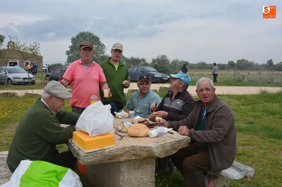 A continuación, en la explanada de la ermita, pequeños y mayores se animaron a bailar al son de la música de Mariano Díaz hasta la hora de la merienda campestre. En el entorno de la ermita, en las mesas del merendero anejo y en fincas particulares se disfrutó del hornazo, embutidos, quesos, asados, de la sangría ofrecida por el Consistorio y, cómo no, de los vinos de las cosechas particulares de las pocas viñas que aún se cultivan en la zona, 700 hectáreas que en su día producían fructíferas cosechas de buen vino.