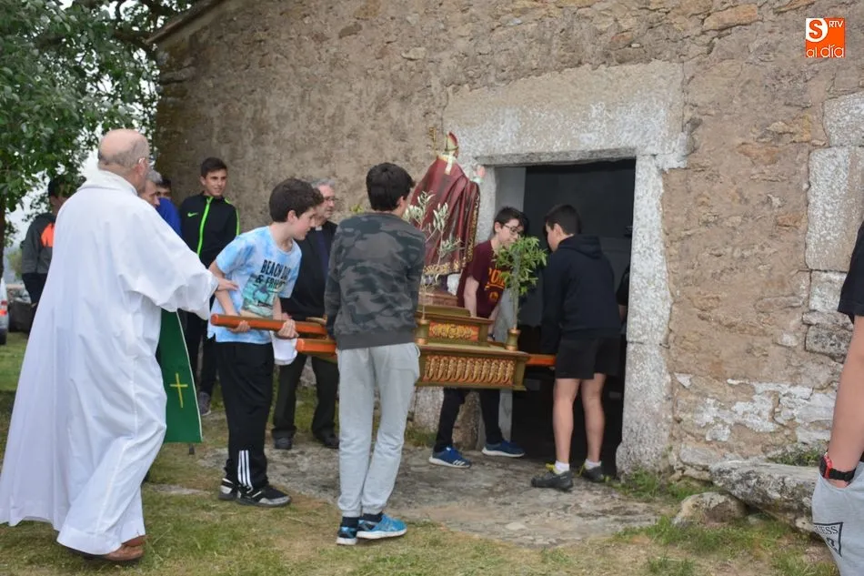 La celebración se inició a media tarde con los actos religiosos en la pequeña ermita del santo, ubicada en el corazón del paraje de Las Viñas. Después del rosario y de la misa, la pequeña imagen del santo patrón de los viñedos fue sacada en procesión alrededor del templo. Los portadores del Santo han sido este año un grupo de adolescentes, que han querido así participar activamente en la tradicional celebración. A la espalda del templo, el párroco Andrés García procedió a la bendición de los campos, pidiendo buenas cosechas.