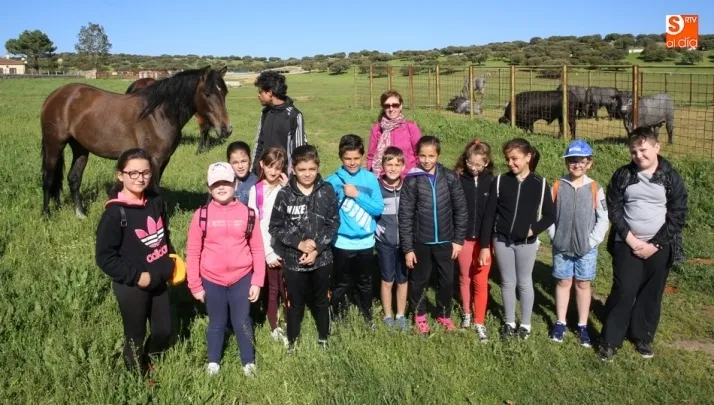 Esta actividad se enmarca en el programa ?Vive la dehesa? promovido por La Salina con el objetivo de que Castro Enríquez contribuya a la formación de los escolares en materia de medio ambiente y recursos agroganaderos propios de la provincia salmantina, así como proyectos de investigación como el cultivo de la trufa. Los escolares pudieron sentir el aliento de varios ejemplares equinos de pura raza española, así como toros y vacas de morucha.