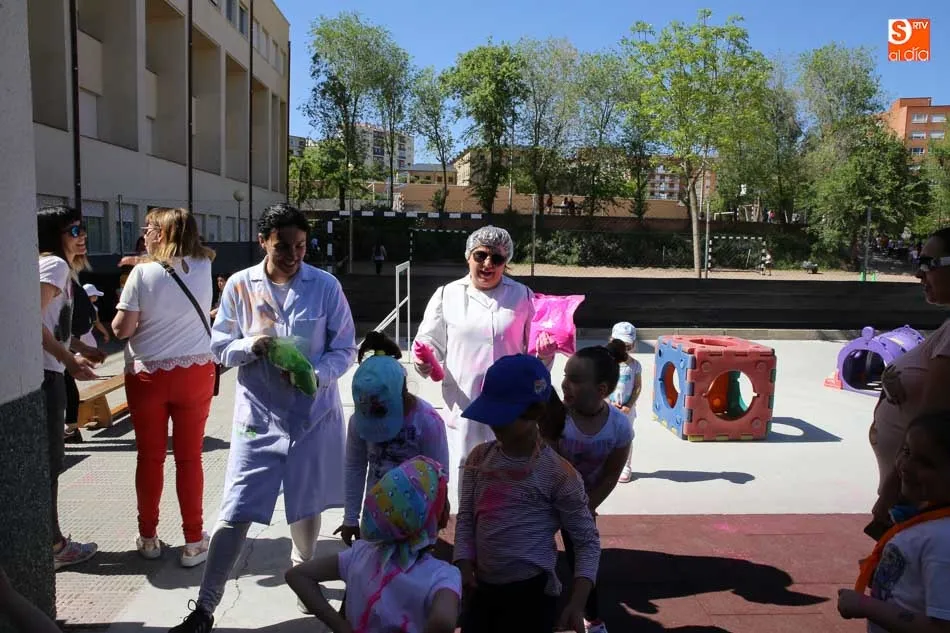 El colegio Antonio Machado disfruta estos días de sus fiestas y este jueves lo hace con una de las actividades estrella, la Color Party en la que han participado profesores y alumnos. Por la mañana, los alumnos de infantil y primaria disfrutaron de un desayuno saludable. Posteriormente, los más pequeños participaron en la celebración de distintos juegos tradicionales y los de Primaria en la Gymkana Deportiva. Luego hubo una proyección cinematográfica para ambos.
