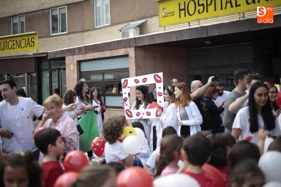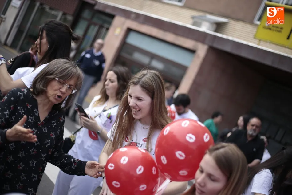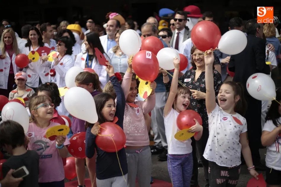 Miles de besos han inundado este viernes el Complejo Asistencial Universitario de Salamanca para celebrar el Día del Niño Hospitalizado. Salamanca se ha sumado a una iniciativa secundada por hospitales de toda España, y lo ha hecho con un acto simbólico con el lanzamiento de besos y los bailes al ritmo de las divertidas letras de las canciones compuestas para este evento que ha contado con la colaboración de numerosas asociaciones y ONGs.