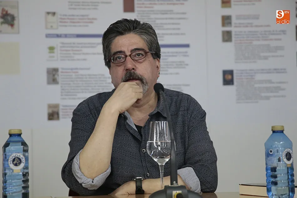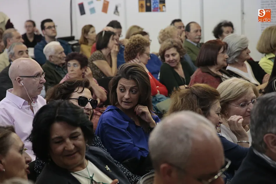 Sánchez Paso, en un diálogo vivo y fructífero con el autor, destacó que el primero de los manuscritos está ambientado en el 1497 y en él aparecen personajes de calado en la ciudad como Cristobal Colón, así como un personaje femenino, Sabela, que habitaba la Casa de la Mancebía. Una primera obra con alusiones a La Celestina que relataba los ambientes estudiantiles y que tuvo su continuación con El manuscrito de nieve donde el autor se atreve a recorrer los tugurios del juego de la mano de otro personaje legendario, el Lazarillo de Tormes. Obra que recorre la Salamanca de noche, en ella también aparecen nombres como el de Juan dell´Enzina, Doña María la Brava y las mujeres de la Universidad, Luisa ?Lucía- de Medrano y Beatriz Galindo, mientras Rojas investiga las andanzas de un asesino en serie. Una Beatriz Galindo protagonista de otra gran novela de Jambrina, La corte de los engaños, y que nos trae a la memoria a las mujeres que se disfrazaban de varón tan queridas para el autor Jambrina, que, según Sánchez del Paso, no ha dejado ni una calle por recorrer de esta Salamanca que es un protagonista más de las novelas.