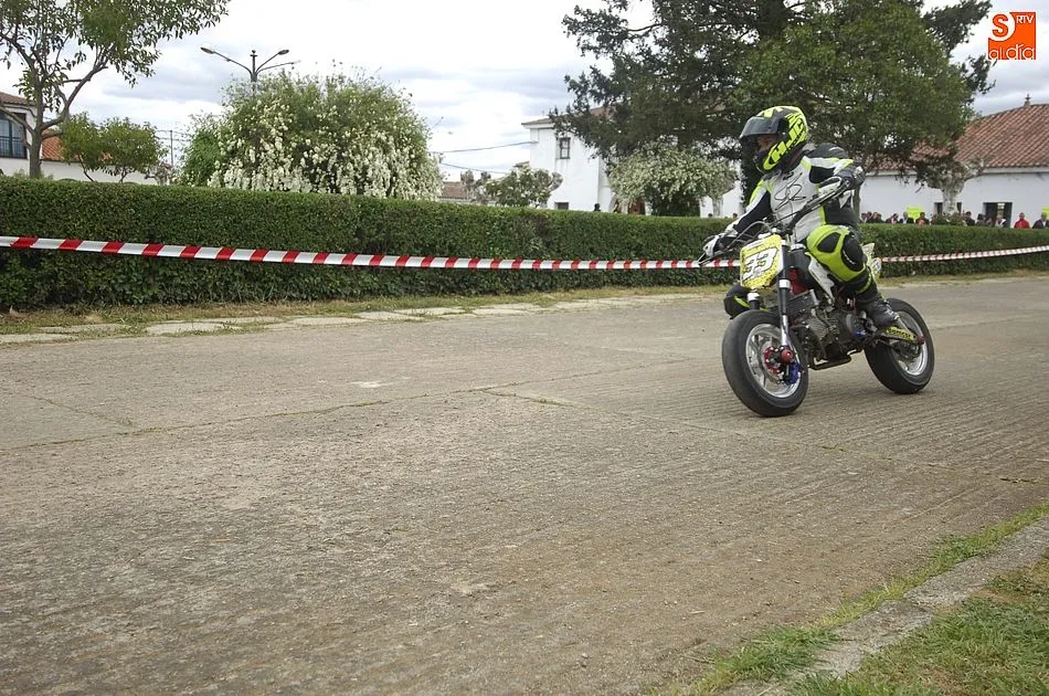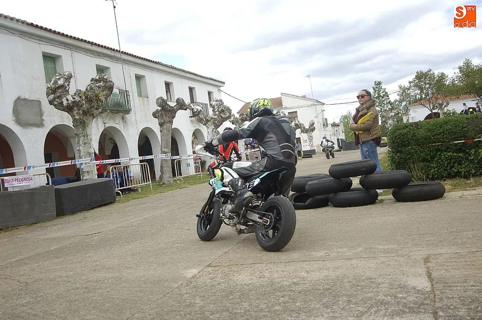 En este sentido, las calles del agregado se convirtieron en todo un circuito urbano para que a lo largo del día varios pilotos principalmente locales se subieran a sus monturas para rodar y rodar, todo ello bajo la organización del Club Deportivo PitMotard Ciudad Rodrigo, que promovió durante la tarde una exhibición con la cual se cerraron las fiestas en honor a San Isidro Labrador de este año.