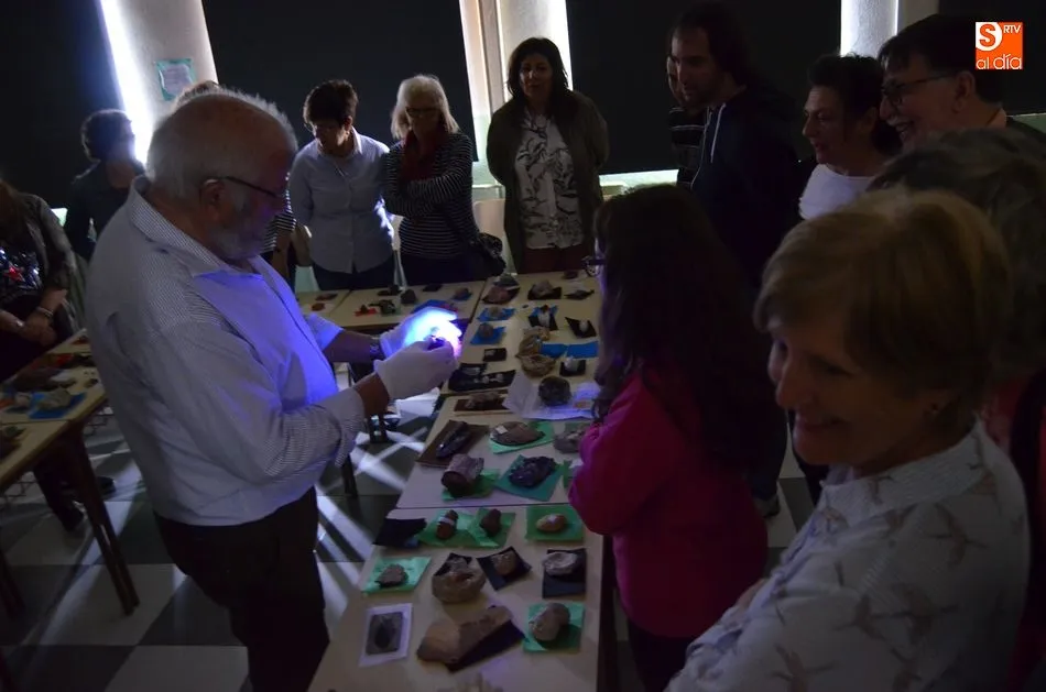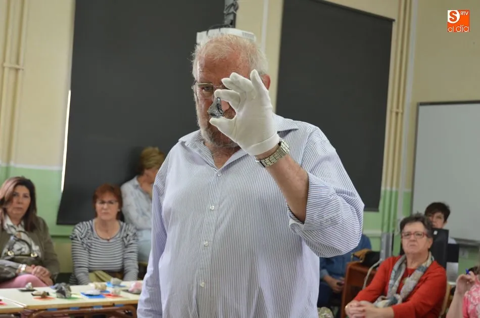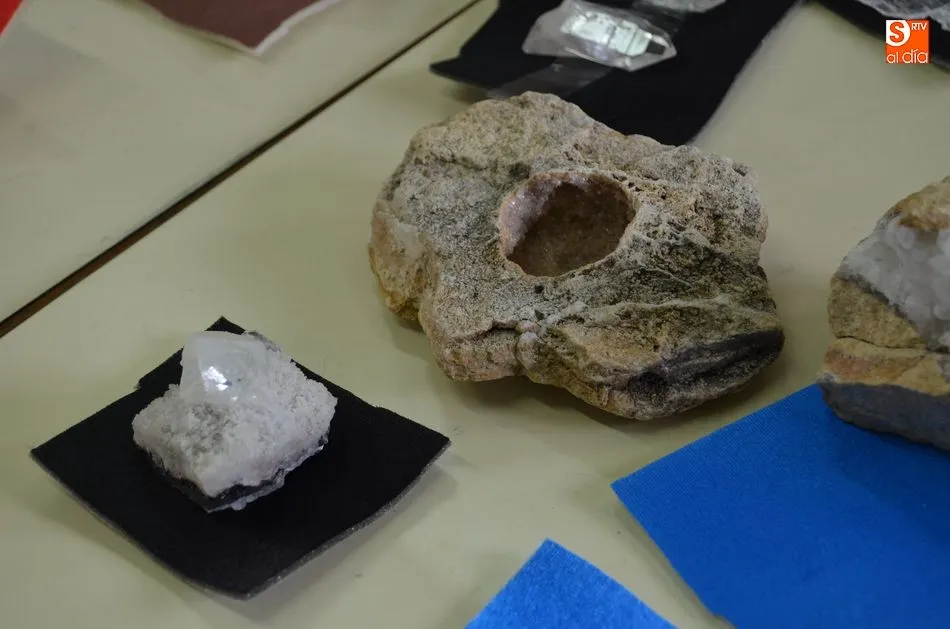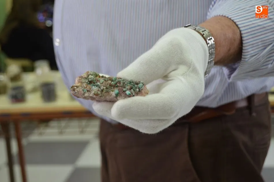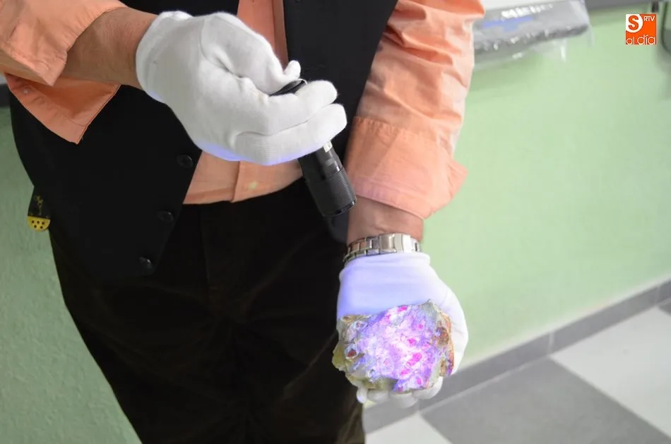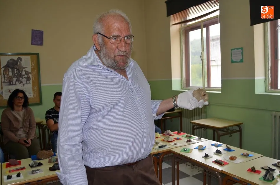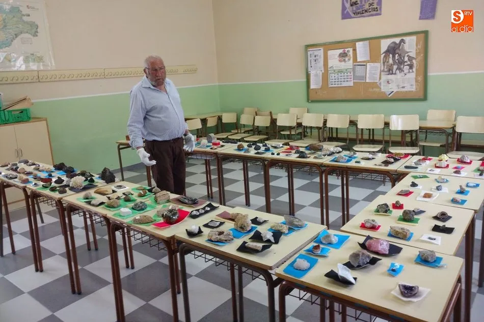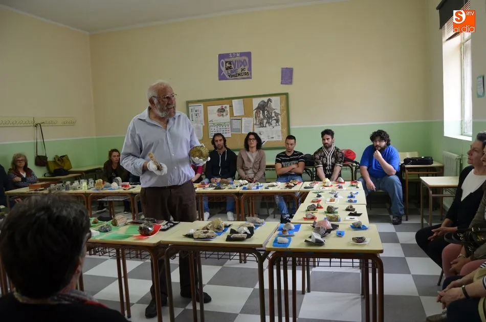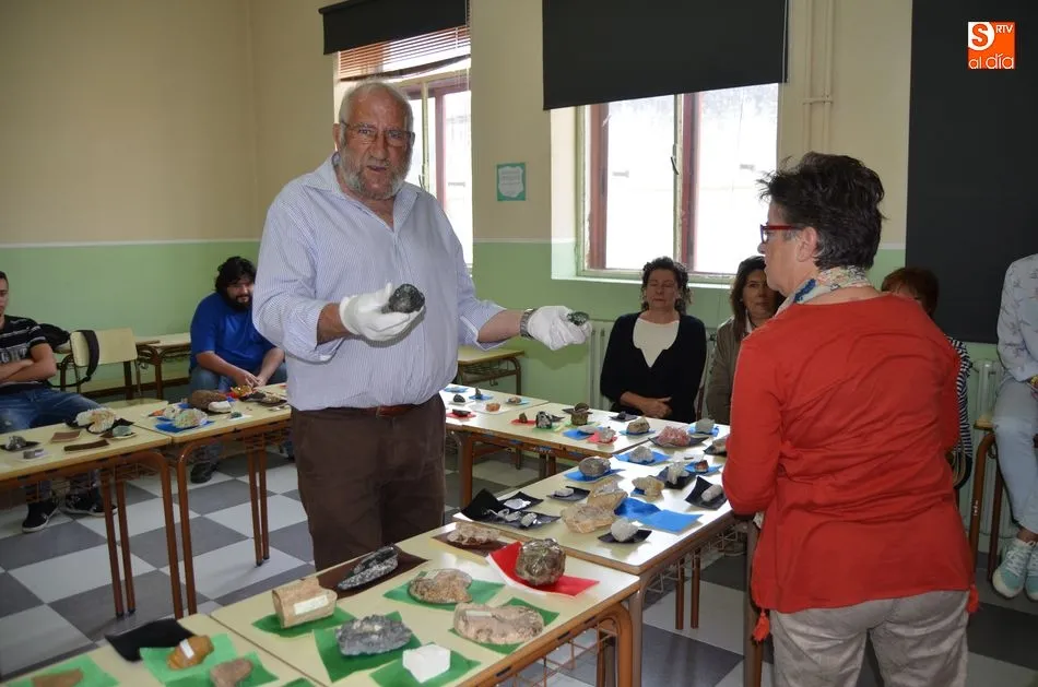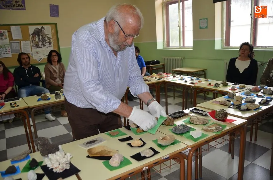 La exposición que ha presentado a los alumnos del EPA ha sido una pequeña muestra de su gran colección en la que ha mostrado piezas tan importantes como un coral con certificado de haber sido arrancado por un tsunami, testigos extraídos a 201 m. de profundidad de El Murallón de Béjar, que ha desvelado basalto en el subsuelo; rubís y esmeraldas en su estado original, minerales que se revelan luminiscentes bajo la luz ultravioleta y otros que se utilizan en la composición de elementos de uso cotidiano, así como una gran colección de fósiles.