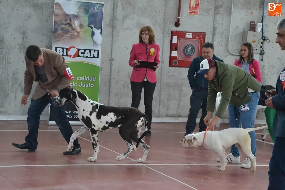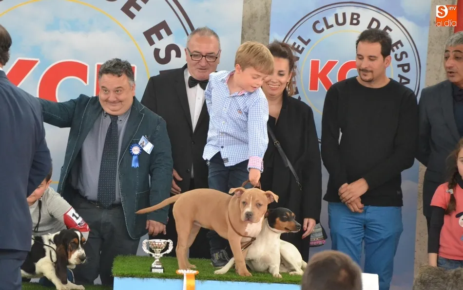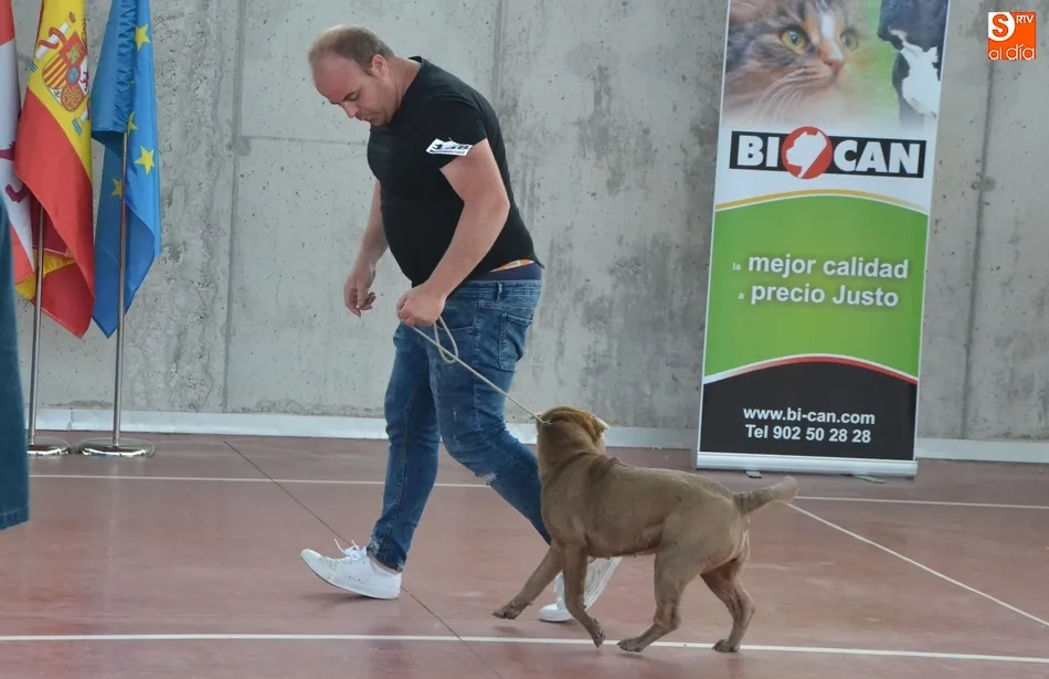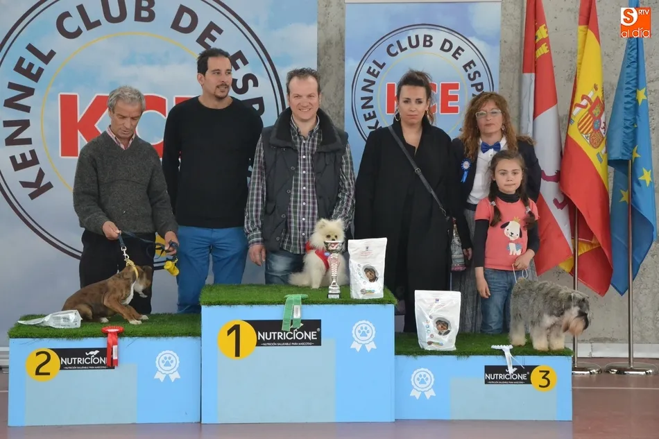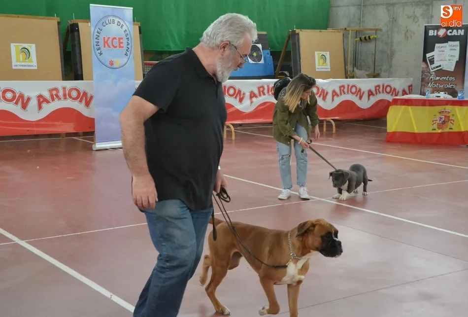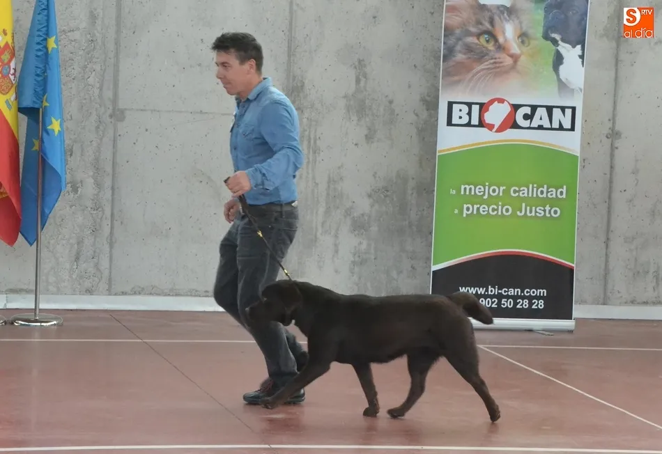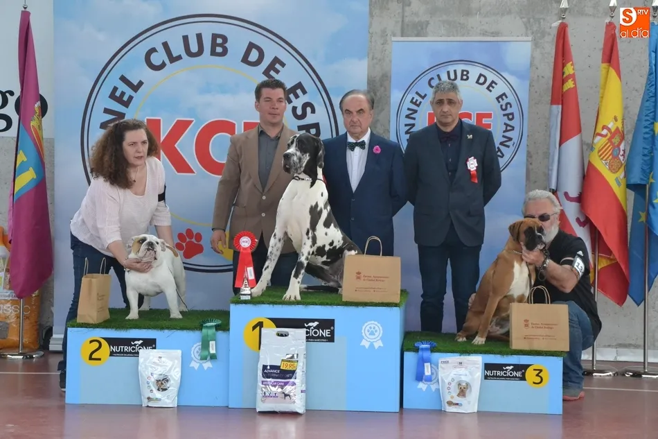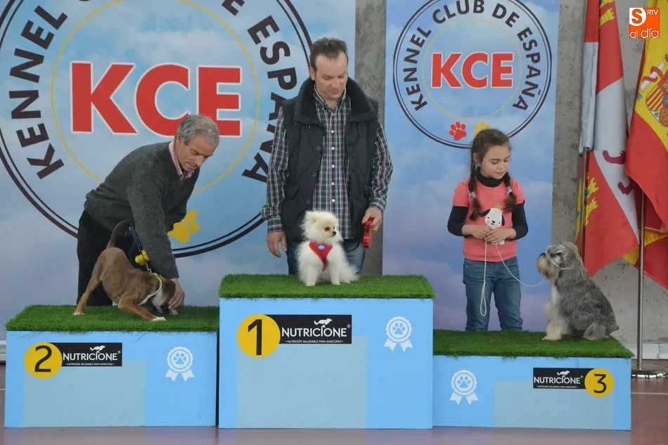 La mañana en la sala multiusos fue muy larga, sometiéndose al escrutinio de los jueces los diversos perros congregados en el Pabellón, que fueron divididos por categorías. Finalmente, el can que fue proclamado como el mejor de toda la Exposición fue un bóxer, subiendo su propietaria con el can a lo más alto del podio.