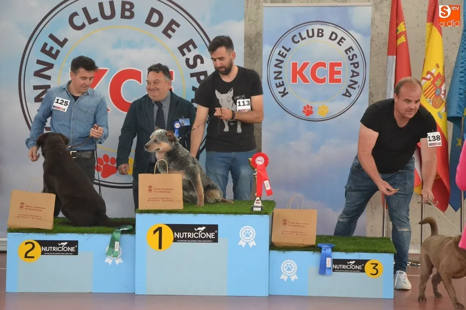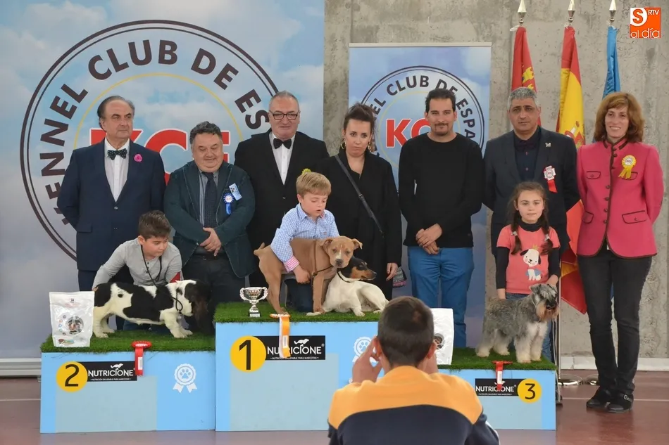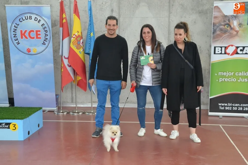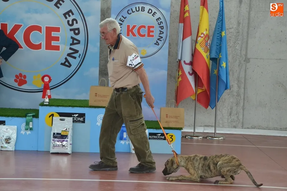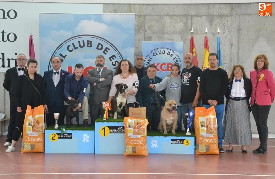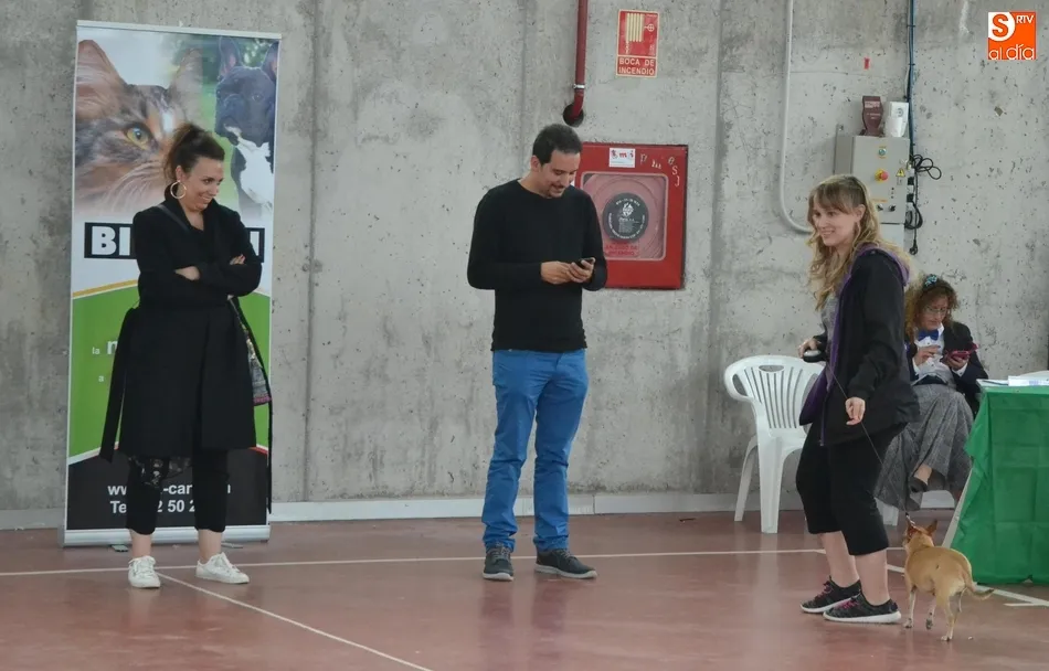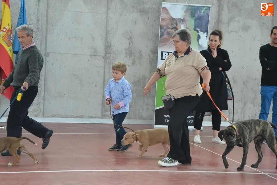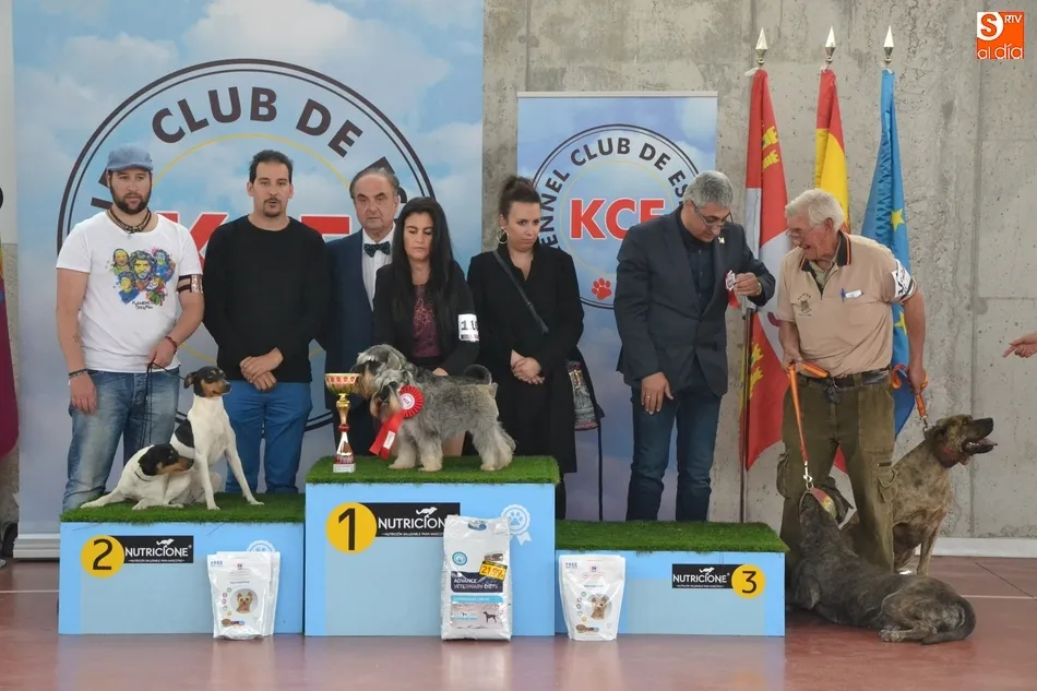 La mañana en la sala multiusos fue muy larga, sometiéndose al escrutinio de los jueces los diversos perros congregados en el Pabellón, que fueron divididos por categorías. Finalmente, el can que fue proclamado como el mejor de toda la Exposición fue un bóxer, subiendo su propietaria con el can a lo más alto del podio.