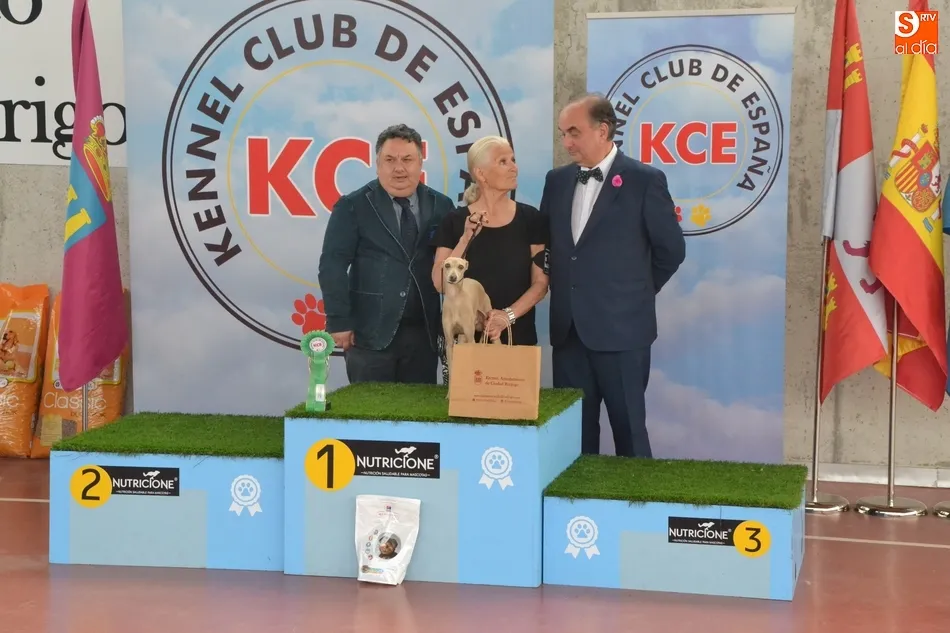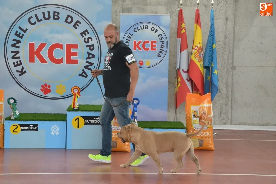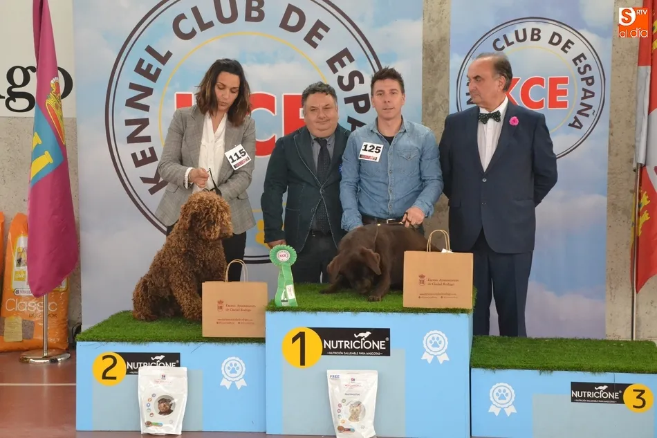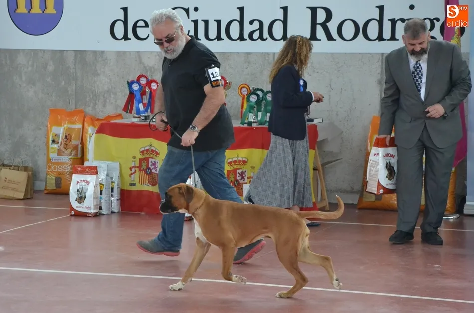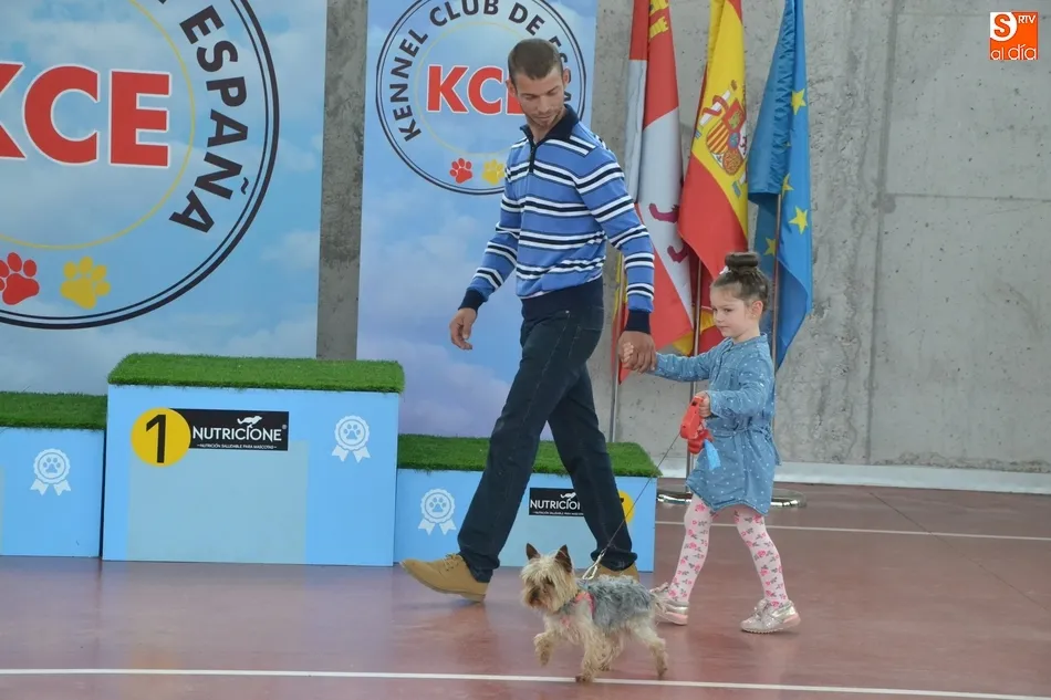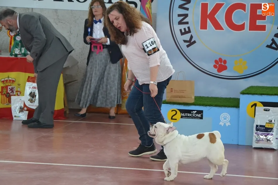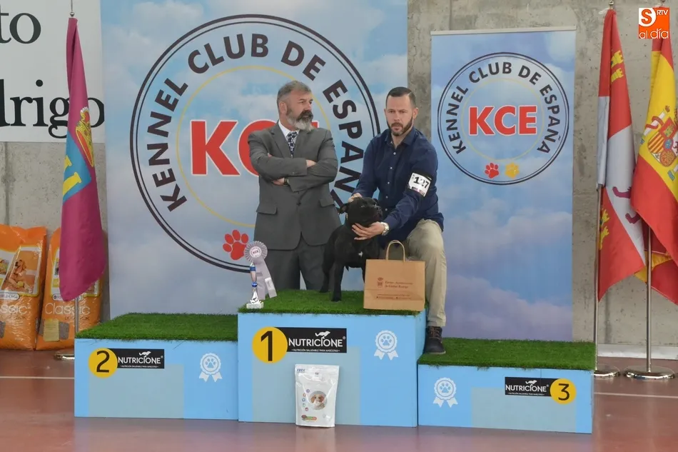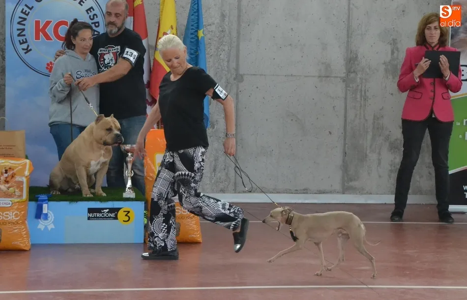 La mañana en la sala multiusos fue muy larga, sometiéndose al escrutinio de los jueces los diversos perros congregados en el Pabellón, que fueron divididos por categorías. Finalmente, el can que fue proclamado como el mejor de toda la Exposición fue un bóxer, subiendo su propietaria con el can a lo más alto del podio.