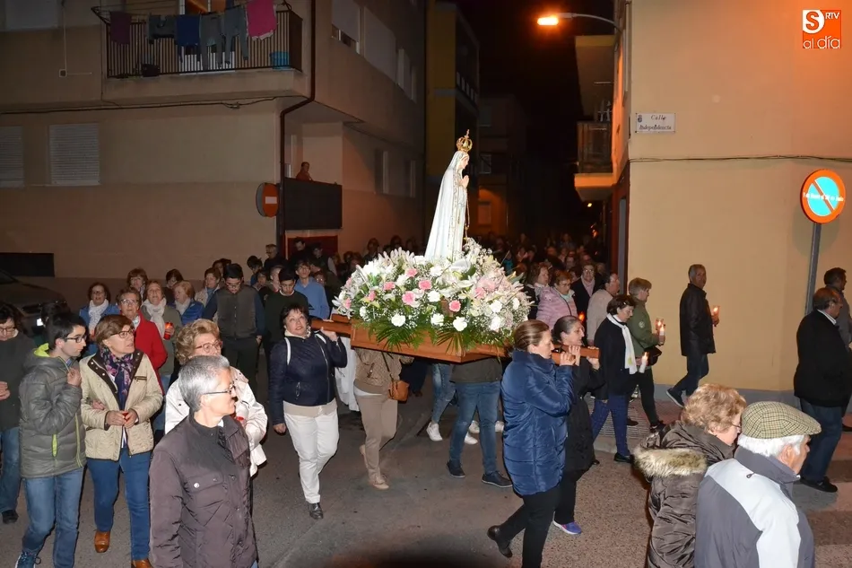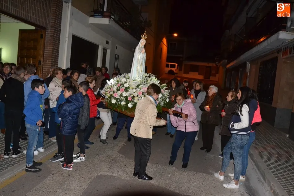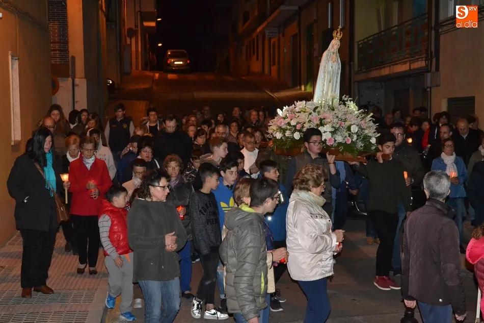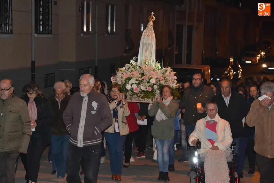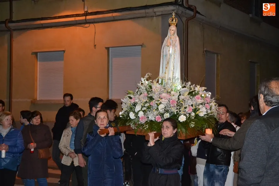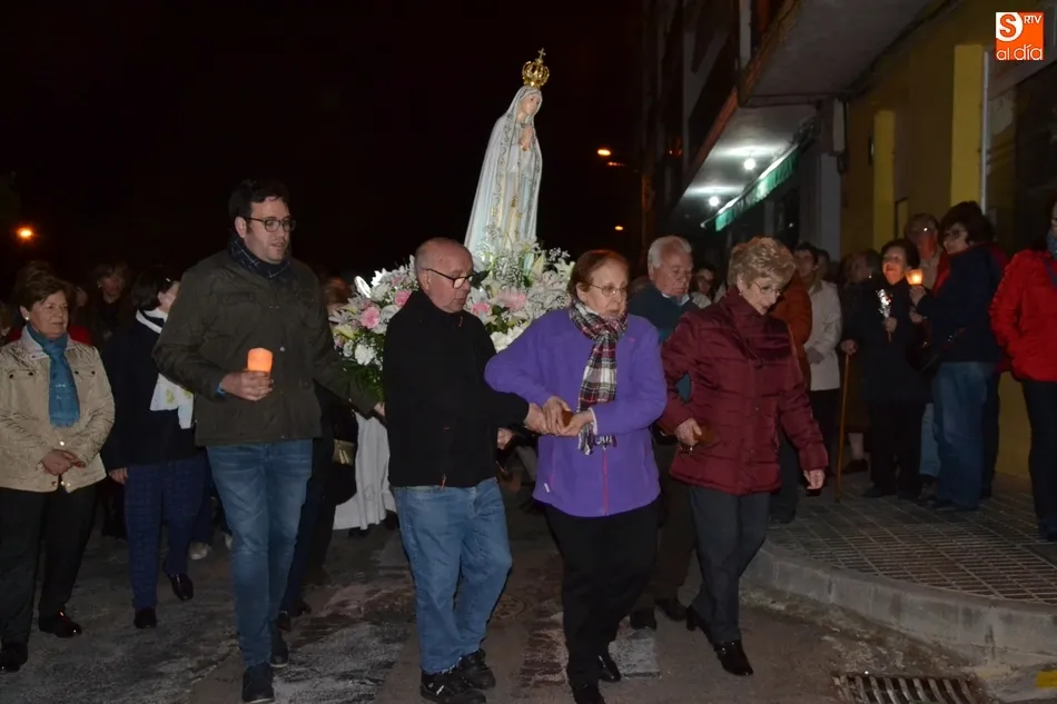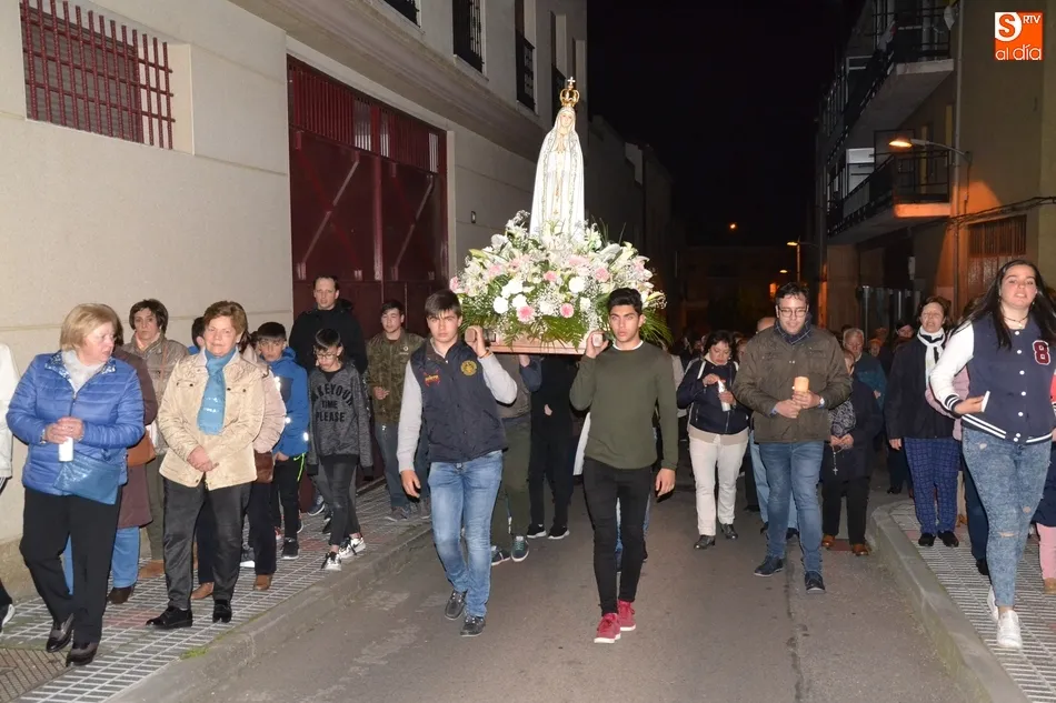 Las calles del Valle de San Martín de Ciudad Rodrigo vieron procesionar en la noche del sábado, como cada 12 de mayo, a la Virgen de Fátima, con motivo de la celebración de su festividad, que aparece en el calendario este domingo.