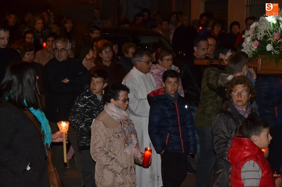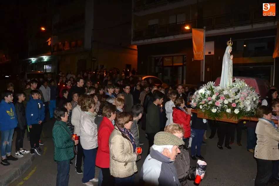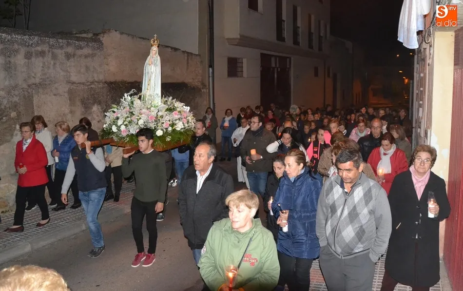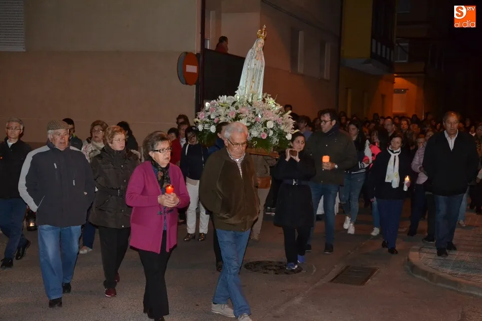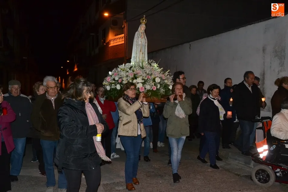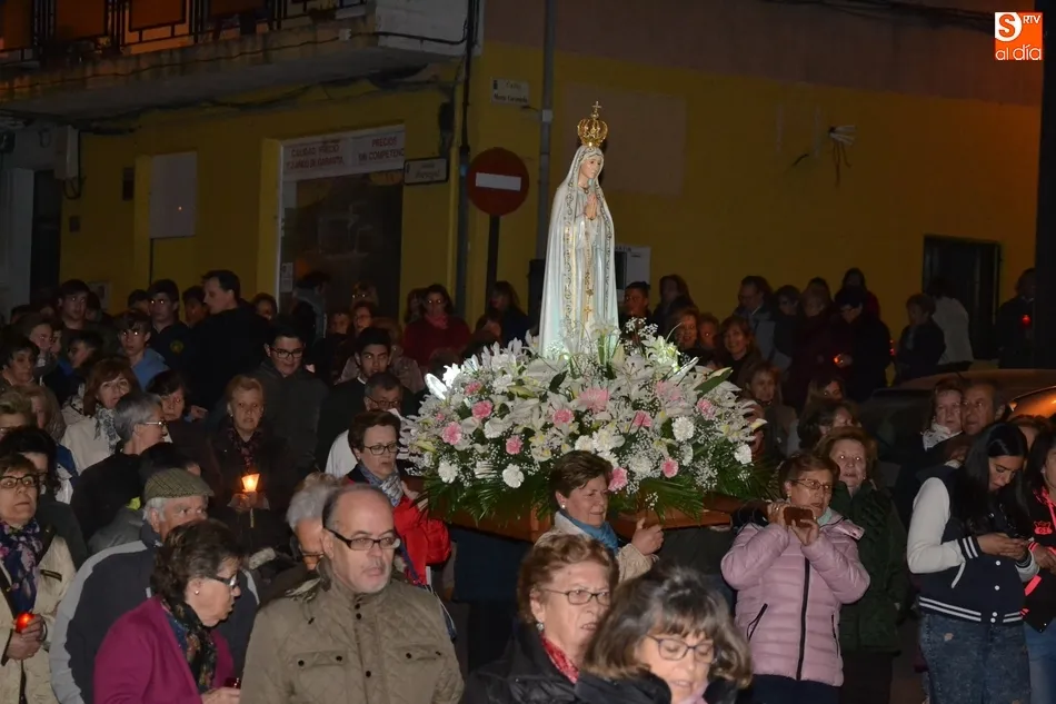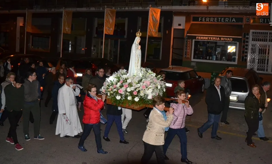 Las calles del Valle de San Martín de Ciudad Rodrigo vieron procesionar en la noche del sábado, como cada 12 de mayo, a la Virgen de Fátima, con motivo de la celebración de su festividad, que aparece en el calendario este domingo.