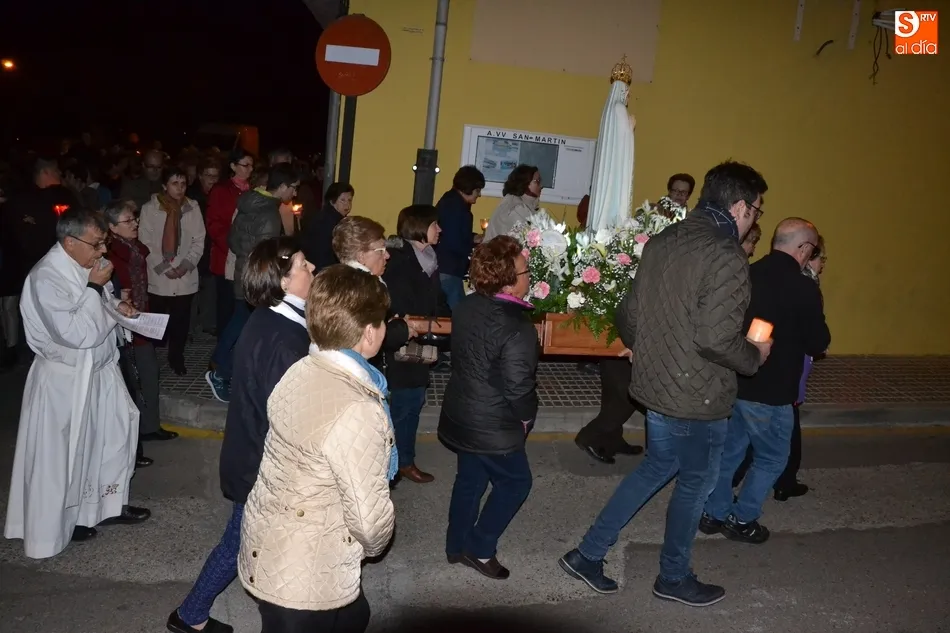 La Virgen de Fátima procesiona entre las velas por el Valle de San Martín en una fría noche