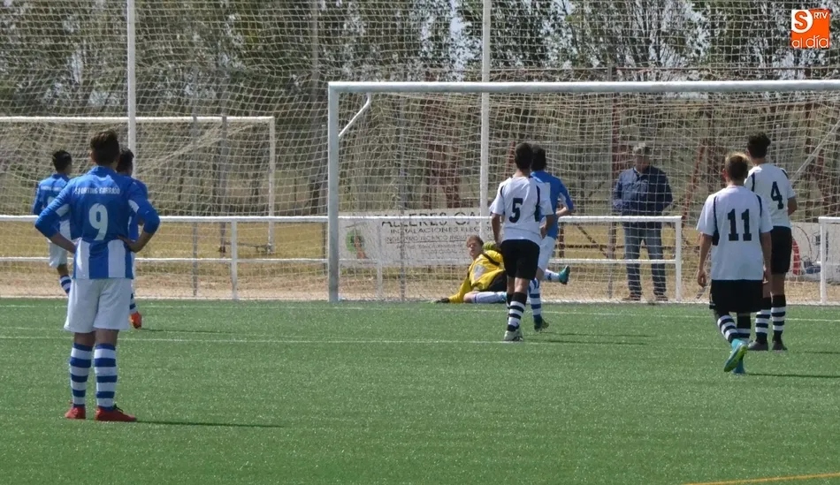 El Sporting Garrido también marcó de penalty en el 36?, tras un choque en el área mirobrigense, pero eso no alteró el carrusel de ocasiones locales, con más oportunidades en los minutos siguientes de Luis, Jorge o Diego, quienes en este caso se encontraron con las acertadas intervenciones del portero visitante. Tras tener el Sporting un par de acciones, Jorge logró el 7º y último tanto de la primera parte en el 45? a pase de Diego.