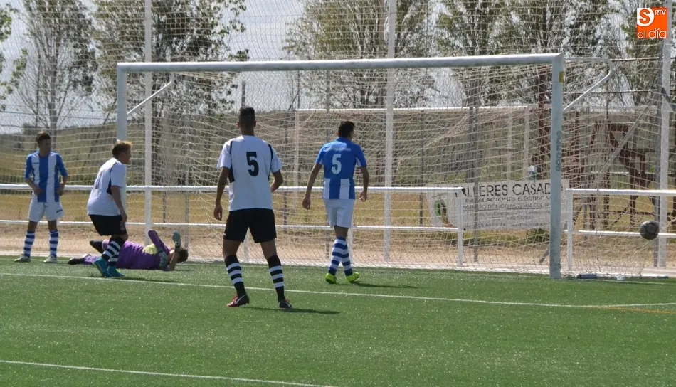 Por parte visitante, lo probaron con un balón bombeado que se fue por poco, sendas opciones en carrera cortadas por César y David, un lanzamiento de falta que Álex despejó con la cabeza en la línea del gol, y un libre indirecto en el área que tapó inicialmente la defensa, pero que dio pie a un segundo tiro que salvó también en la línea Pablo Martín. El partido se cerró con una última intentona en forma de falta botada por Diego desde la frontal del área que se fue al lado del palo derecho.