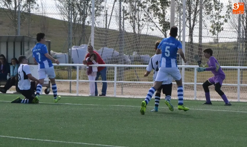 Justo en el 18? se presentó el Ciudad Rodrigo: Javi Martín sufrió una falta al borde del área (cuando se iba sólo a marcar), y él mismo la botó ajustándola al palo derecho. Al minuto siguiente, Jorge recuperó el balón y se lo pasó a Diego, quién a media vuelta marcó. Y al minuto siguiente, en el 20?, Javi Martín botó un córner desde la derecha que remató de cabeza en el 2º palo al fondo de la red Marcos Sánchez. El técnico del Sporting Garrido le dijo a los suyos que ?lo que hacéis bien en 15 minutos lo jodéis en 1?. Y no podía tener más razón.
