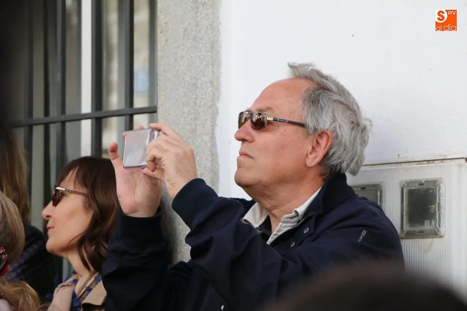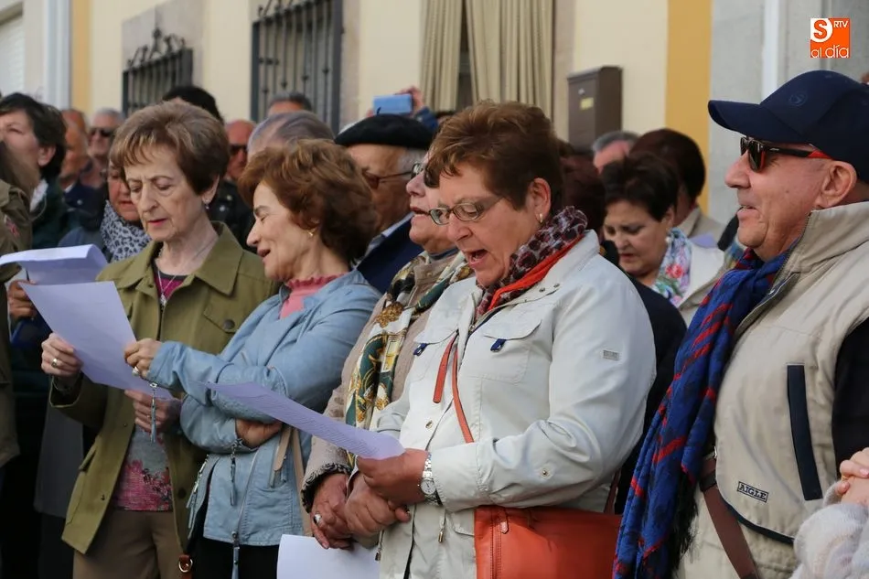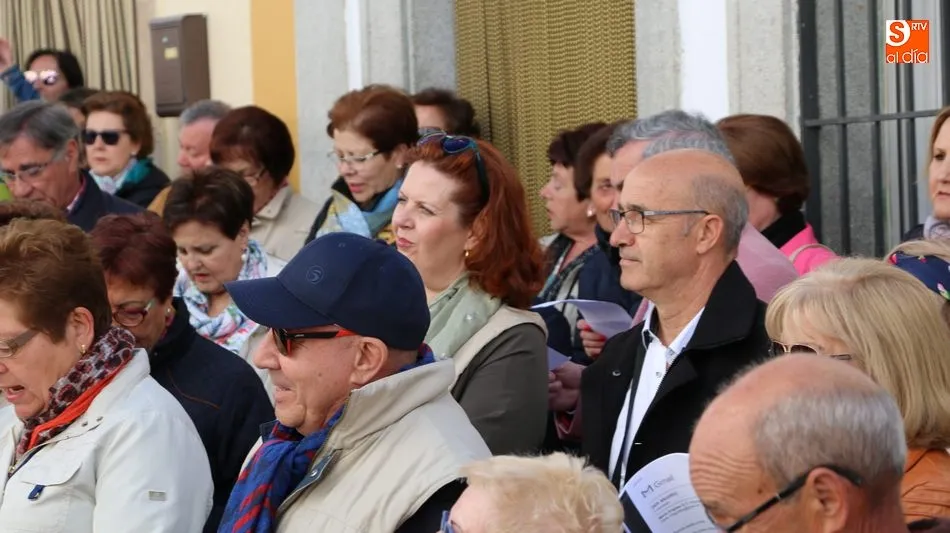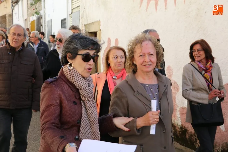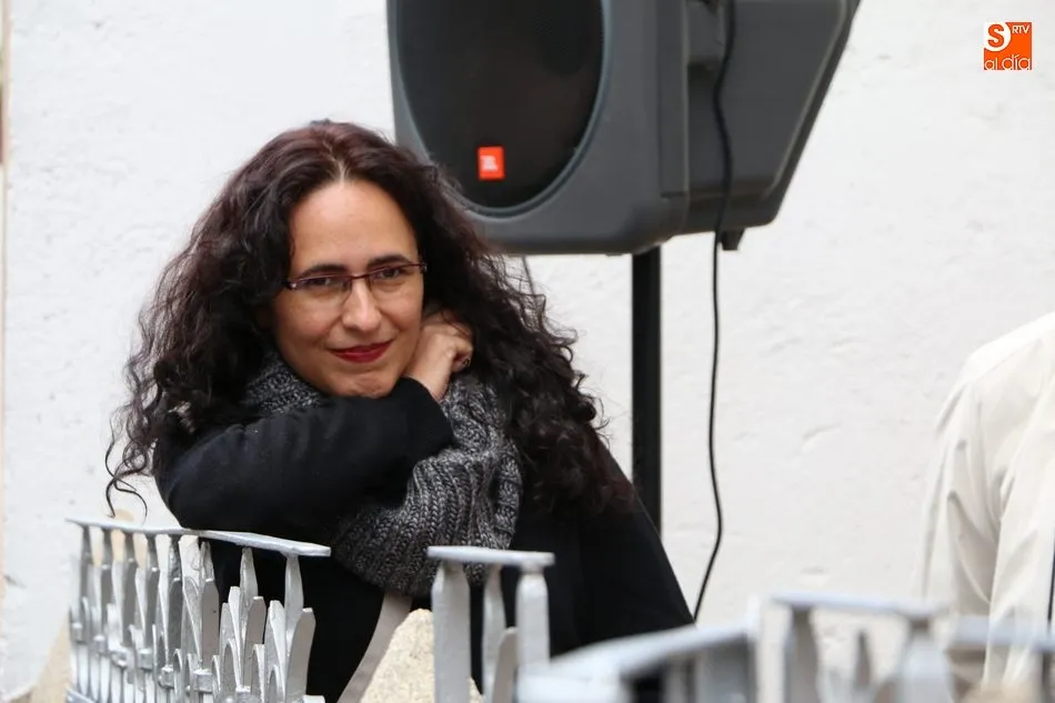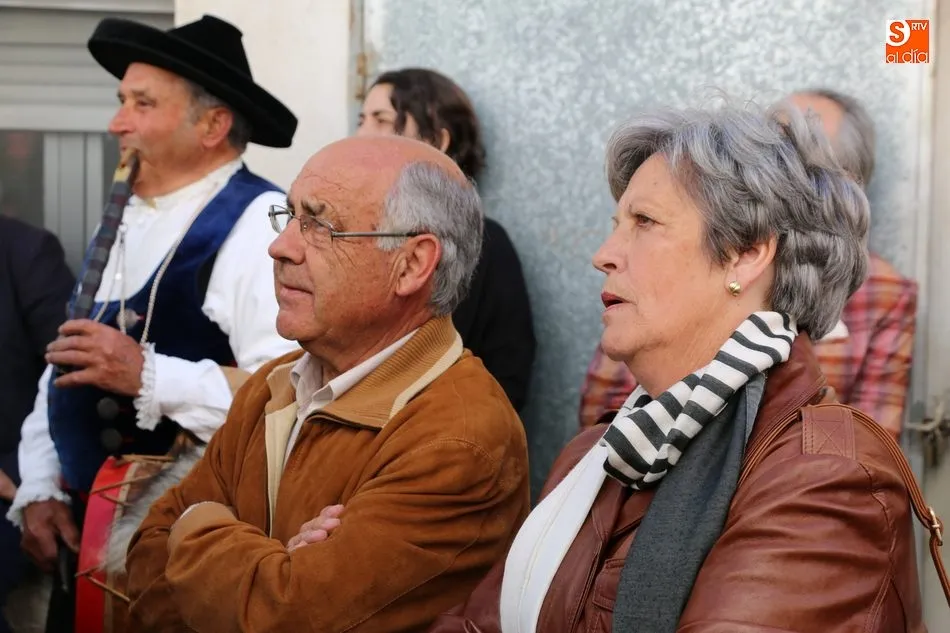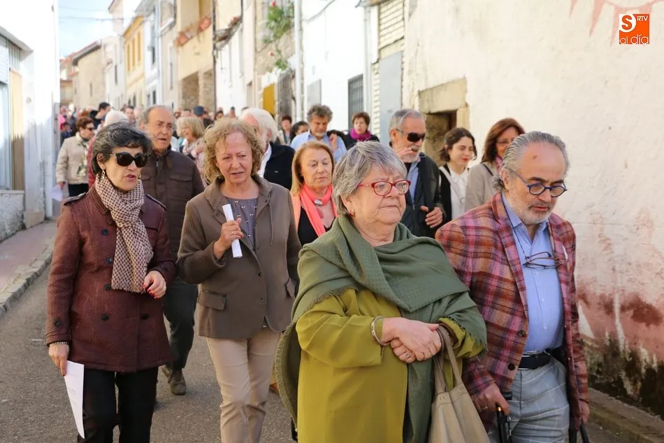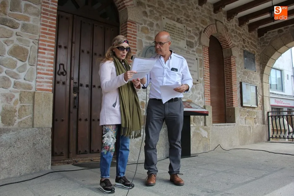 A continuación, la rapsoda María Ángeles García Tábara daba lectura de una forma extraordinaria el texto Confluencia, de José Miguel Ullán, para proseguir camino a la Plaza bajo los sones de la gaita y el tamboril de Fernando Corral. Allí, en el ágora villarinense, bajo los portales de la Casa Consistorial, se desarrollaría un bonito acto con las letras y la música como protagonistas.