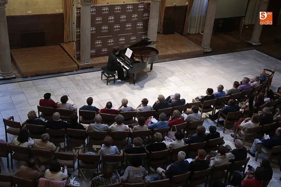 El alumno del Conservatorio Superior de Música de Salamanca, Antonio Garrido Martínez, ha demostrado hoy su talento en el Salón principal del Casino de Salamanca. El pianista ofreció a todos los asistentes un recital de música donde Garrido interpretó obras de Bach, Albéniz y Prokofieff. La entrada fue libre hasta completar aforo.