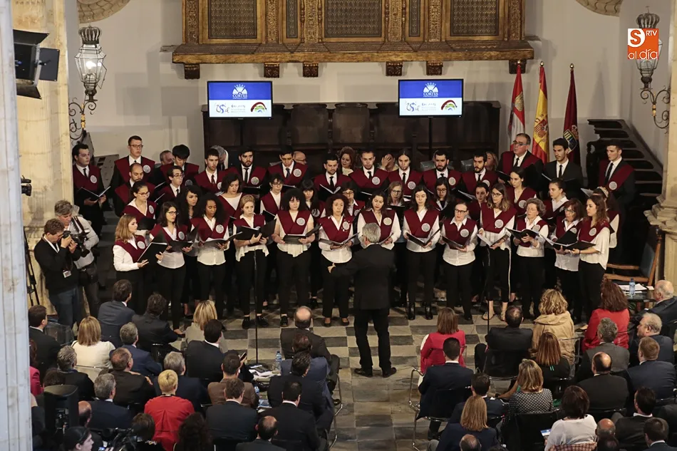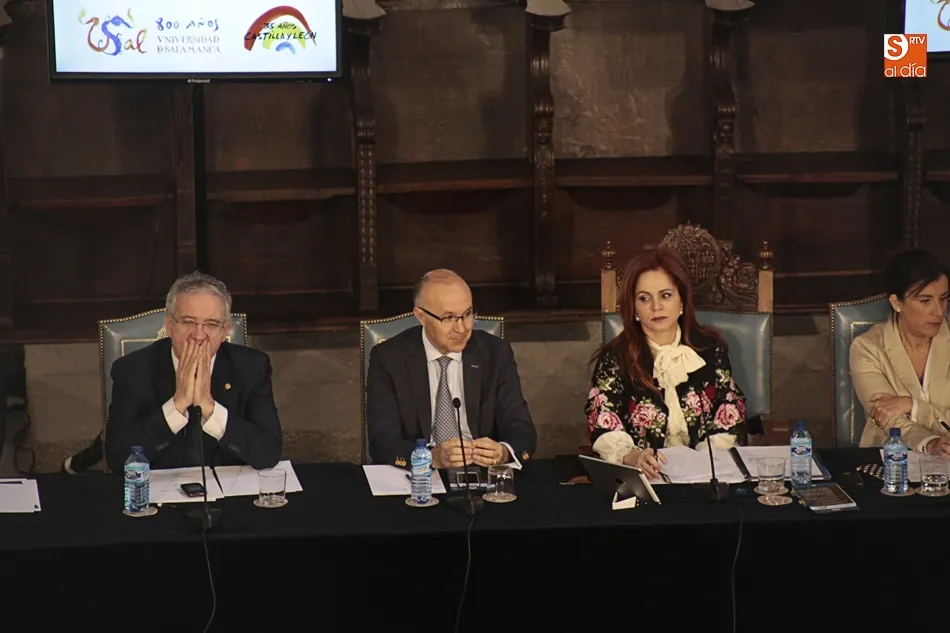 ?Ocho siglos haciendo historia y creando futuro? ha dicho la presidenta durante la inauguración del pleno, incidiendo en el liderazgo de Salamanca en la Educación Superior ?y su capacidad de atraer talento?.