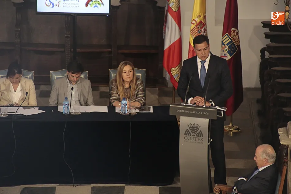 Clemente ha dado las gracias a la Universidad ?por la hospitalidad recibida para celebrar este pleno de las Cortes en Salamanca?, contando también con el apoyo del alcalde de la ciudad y el resto de instituciones de la ciudad. Asimismo, ha recordado la presencia en el pleno de responsables de las organizaciones empresariales, sindicales y agrarias. Clemente ha hecho especial referencia al VIII Centenario de la Universidad que este año sitúa a Salamanca ?en el punto de referencia nacional e internacional en el ámbito académico?.
